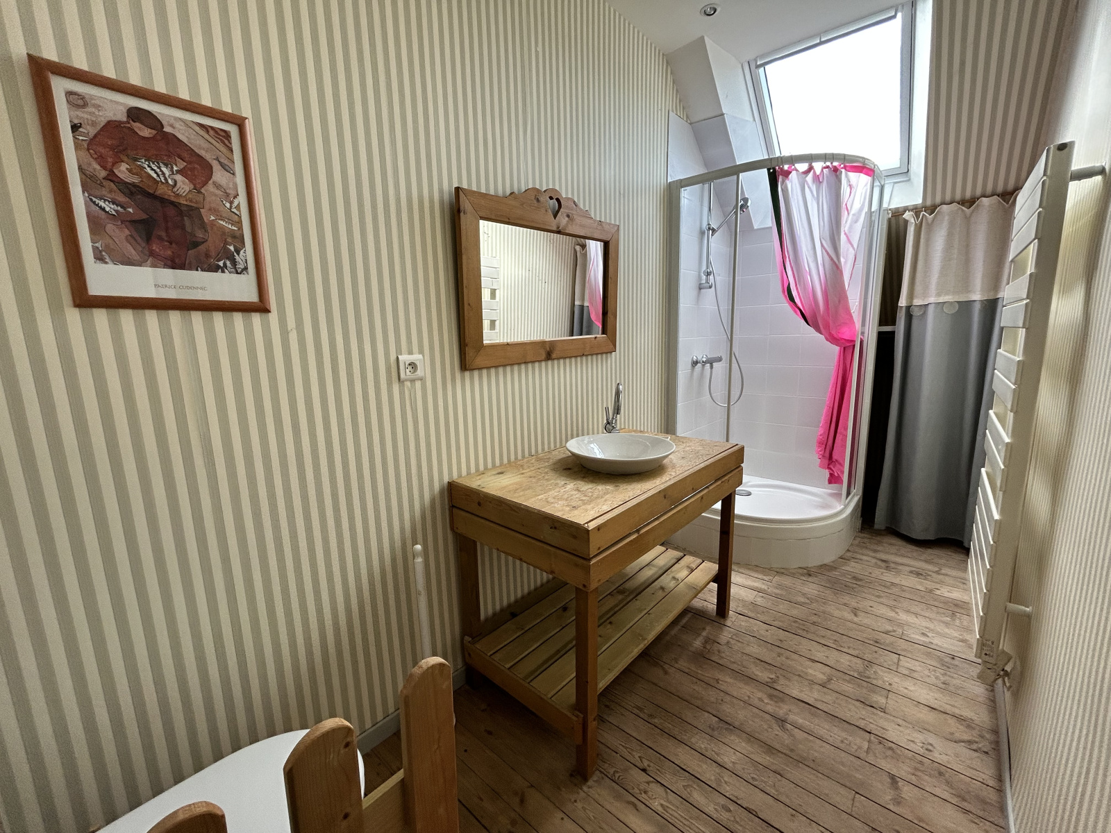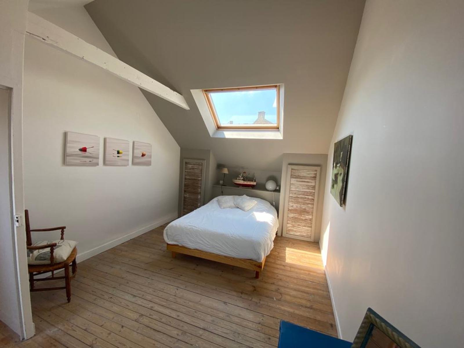 2e étage : chambre avec lit double 140, balcon avec vue sur le chenal, salle de douche et WC.