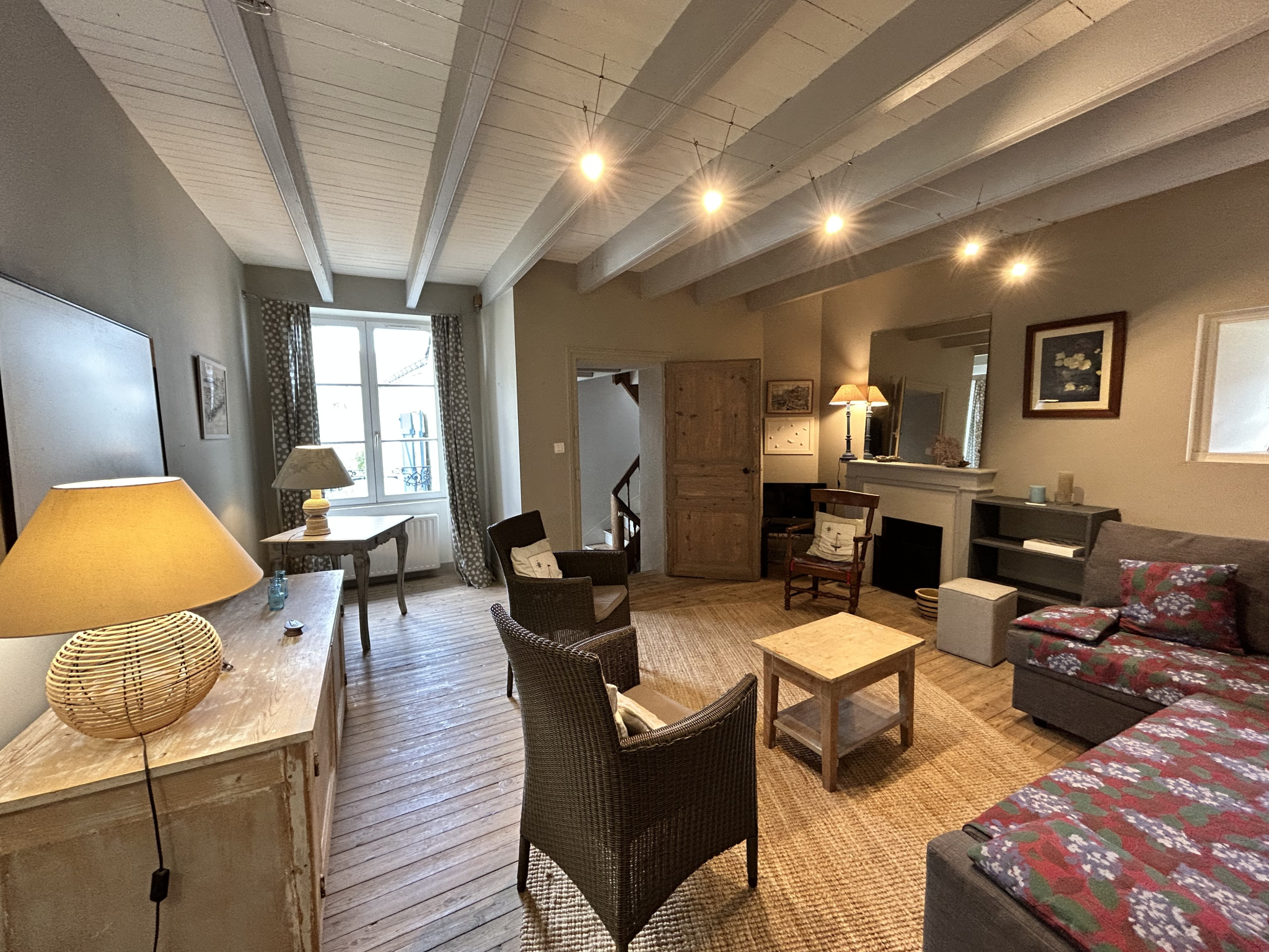 1er étage : cuisine aménagée et lumineuse avec vue sur l’église, salon confortable avec télévision.