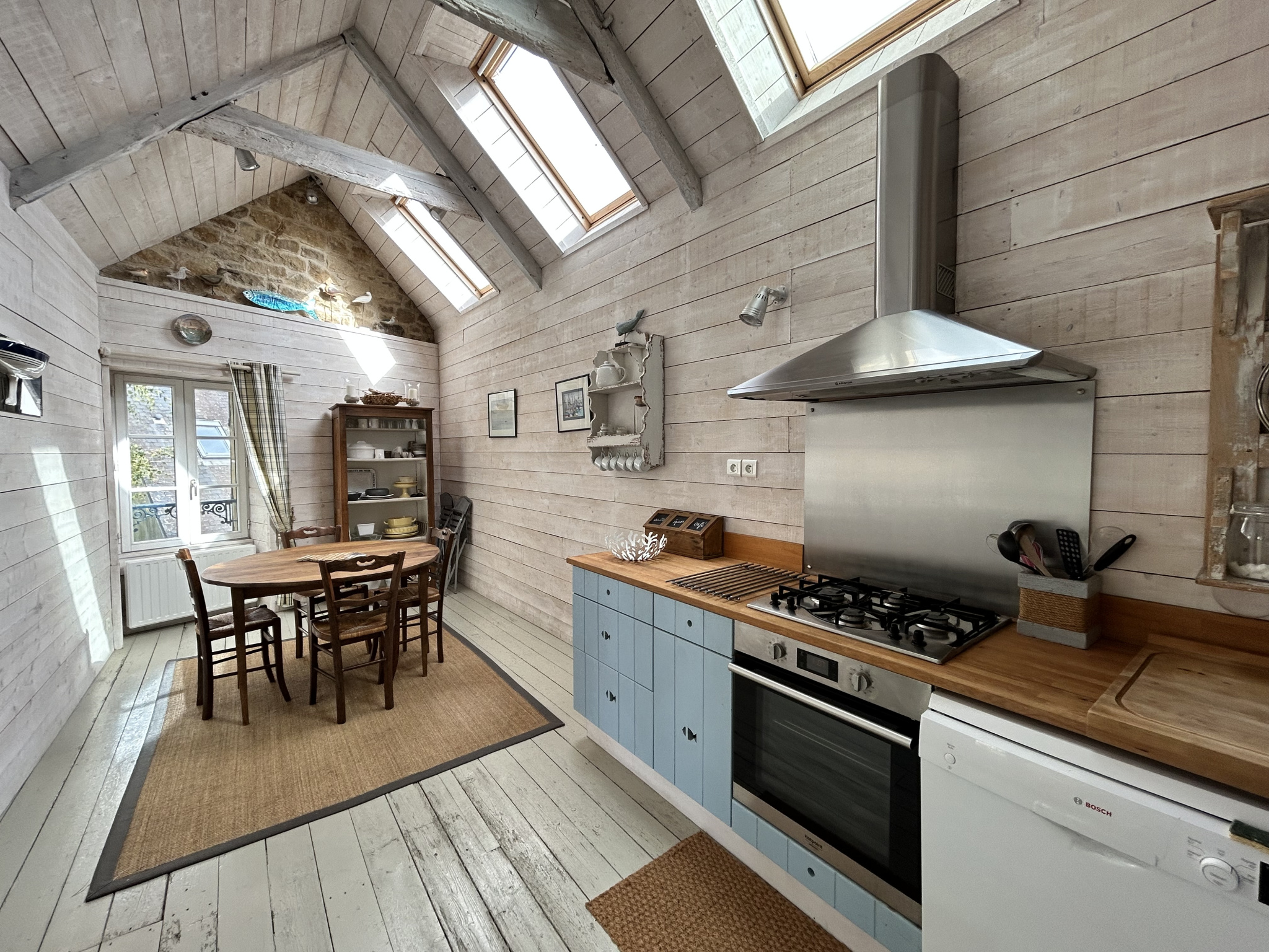 La maison dispose également d’un sous-sol pratique pour le matériel nautique, d’un appenti pour les vélos et d’un lave-linge.
