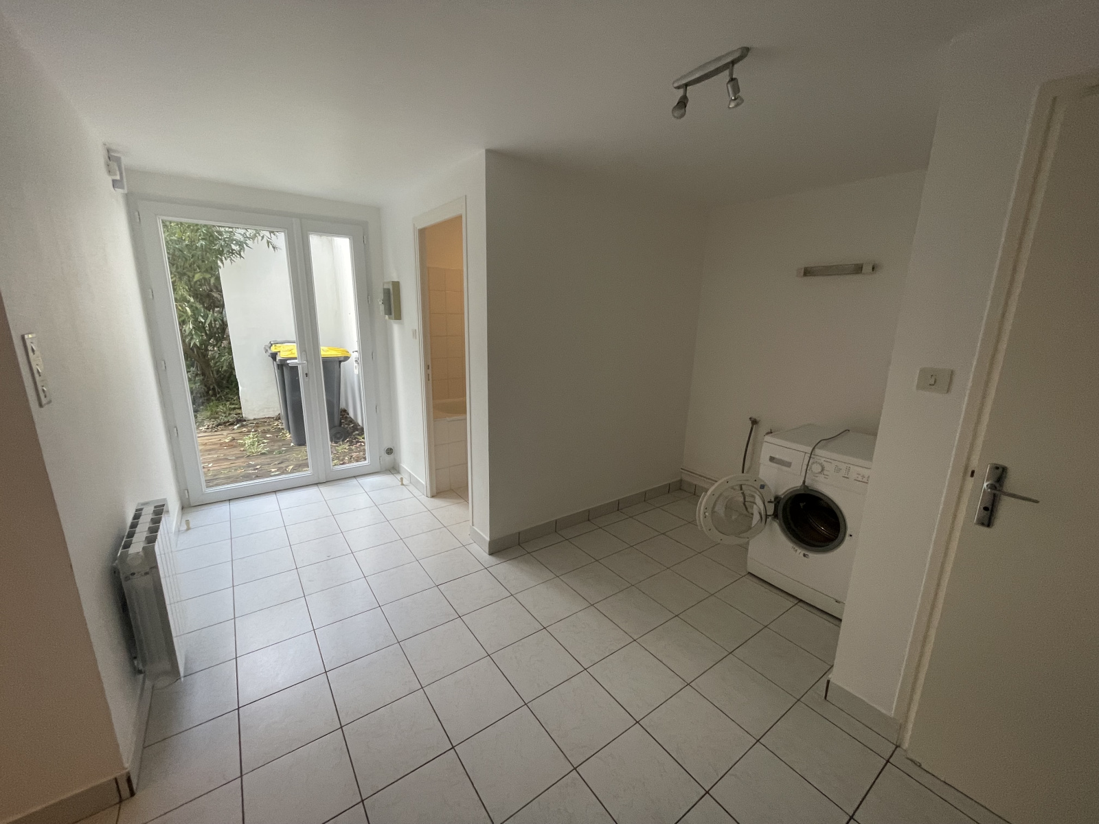 Installé au rez-de-chaussée d'une maison divisée en deux logements, ce bien propose une entrée avec un vaste espace buanderie/rangements, une salle de bains, une cabine de douche ainsi que des WC séparés.