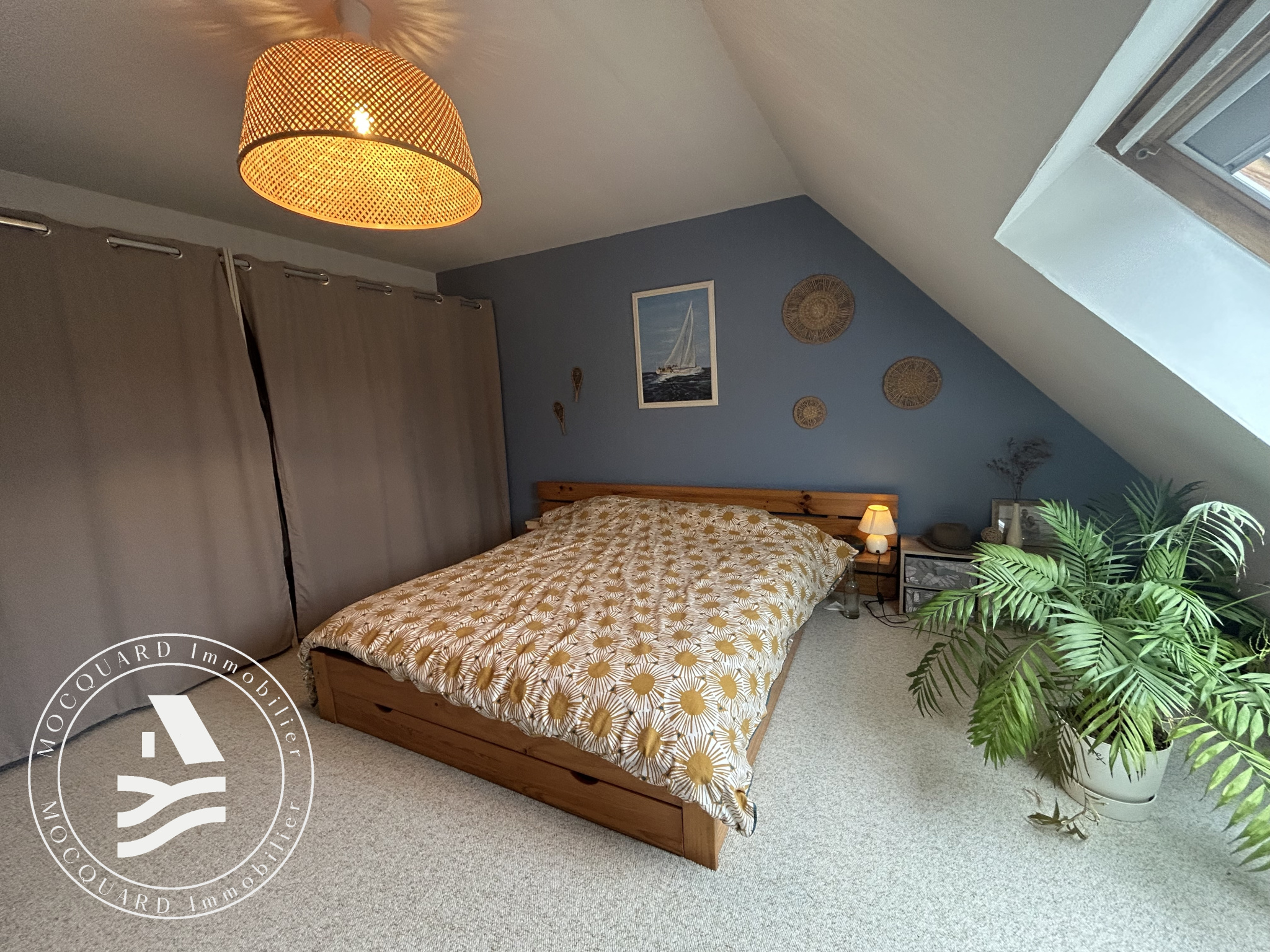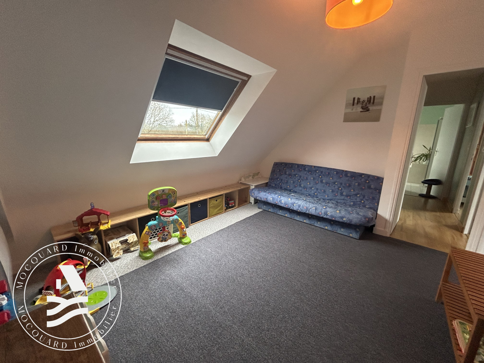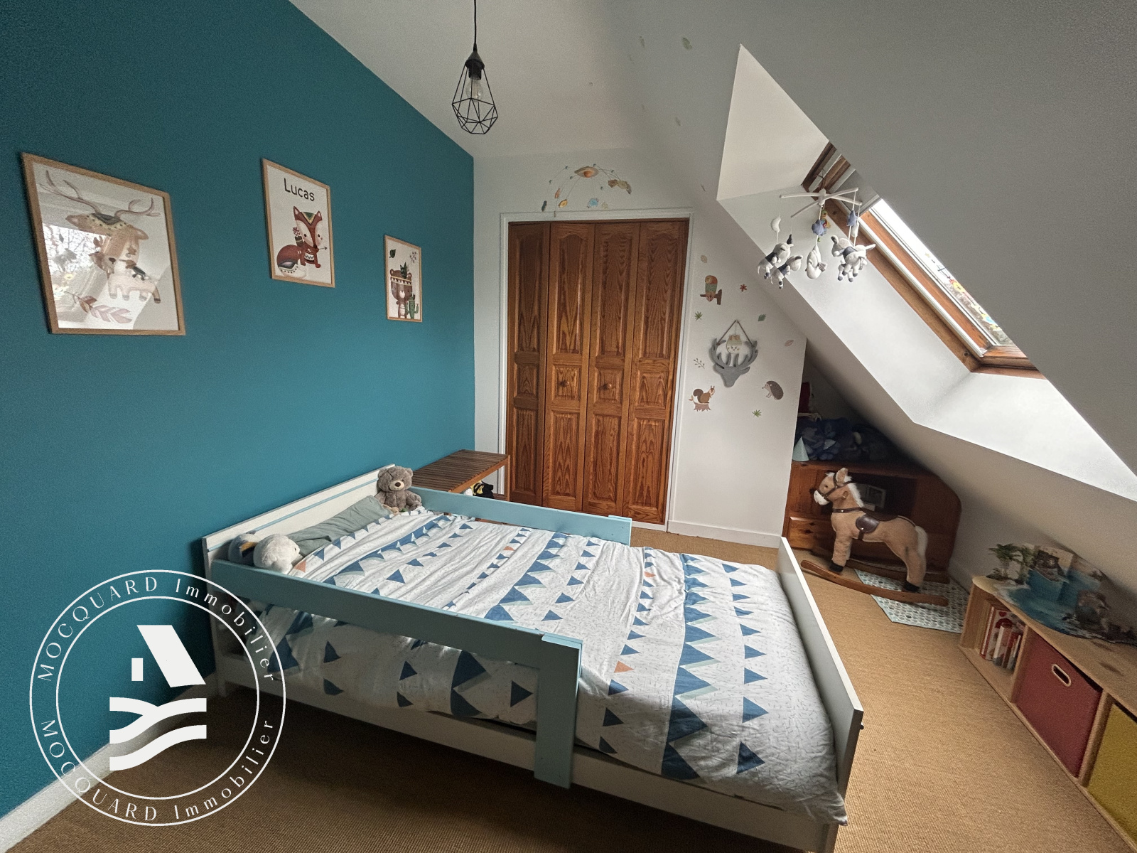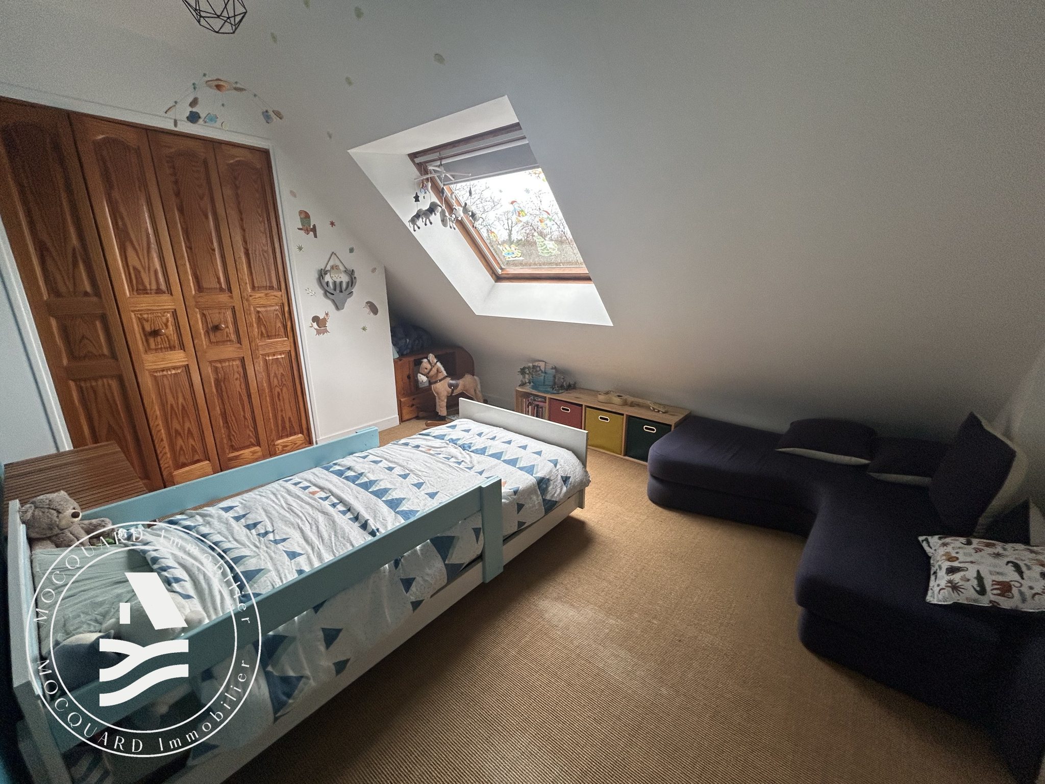 À l’étage, l’espace nuit se compose de 4 chambres et d’une salle de bains, permettant d’accueillir une famille dans de bonnes conditions.