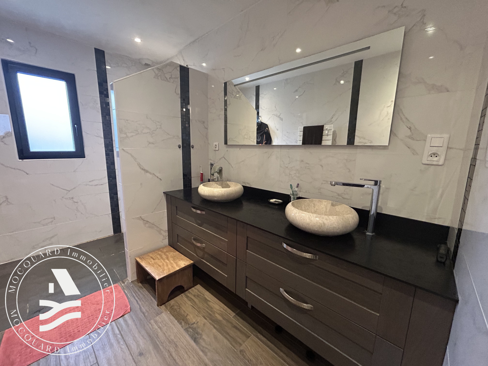 Une extension vient compléter les volumes et propose un grand dressing, des toilettes indépendantes, une chambre ainsi qu’une salle d’eau, offrant une configuration confortable et fonctionnelle.