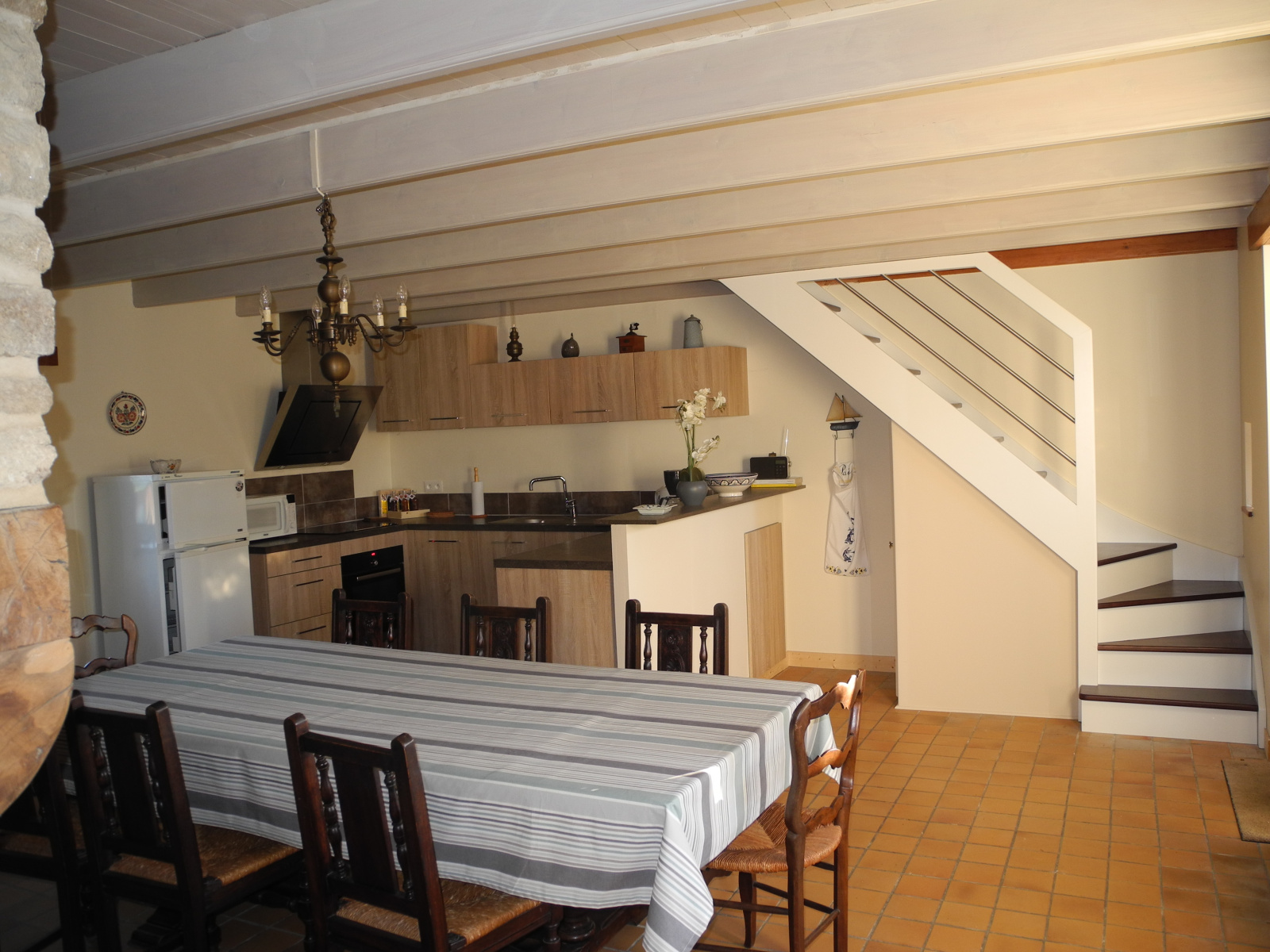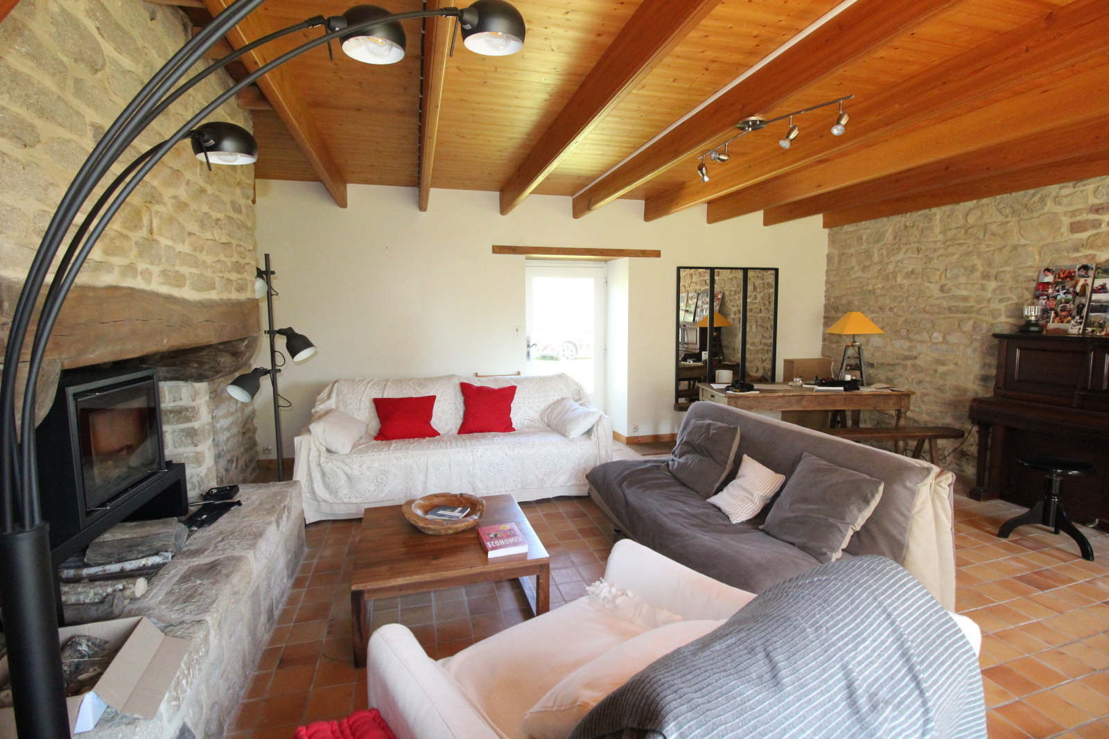 Elle offre au rez-de-chaussée : Un séjour cheminée avec cuisine équipée aménagée, un salon avec cheminée et poêle à bois.