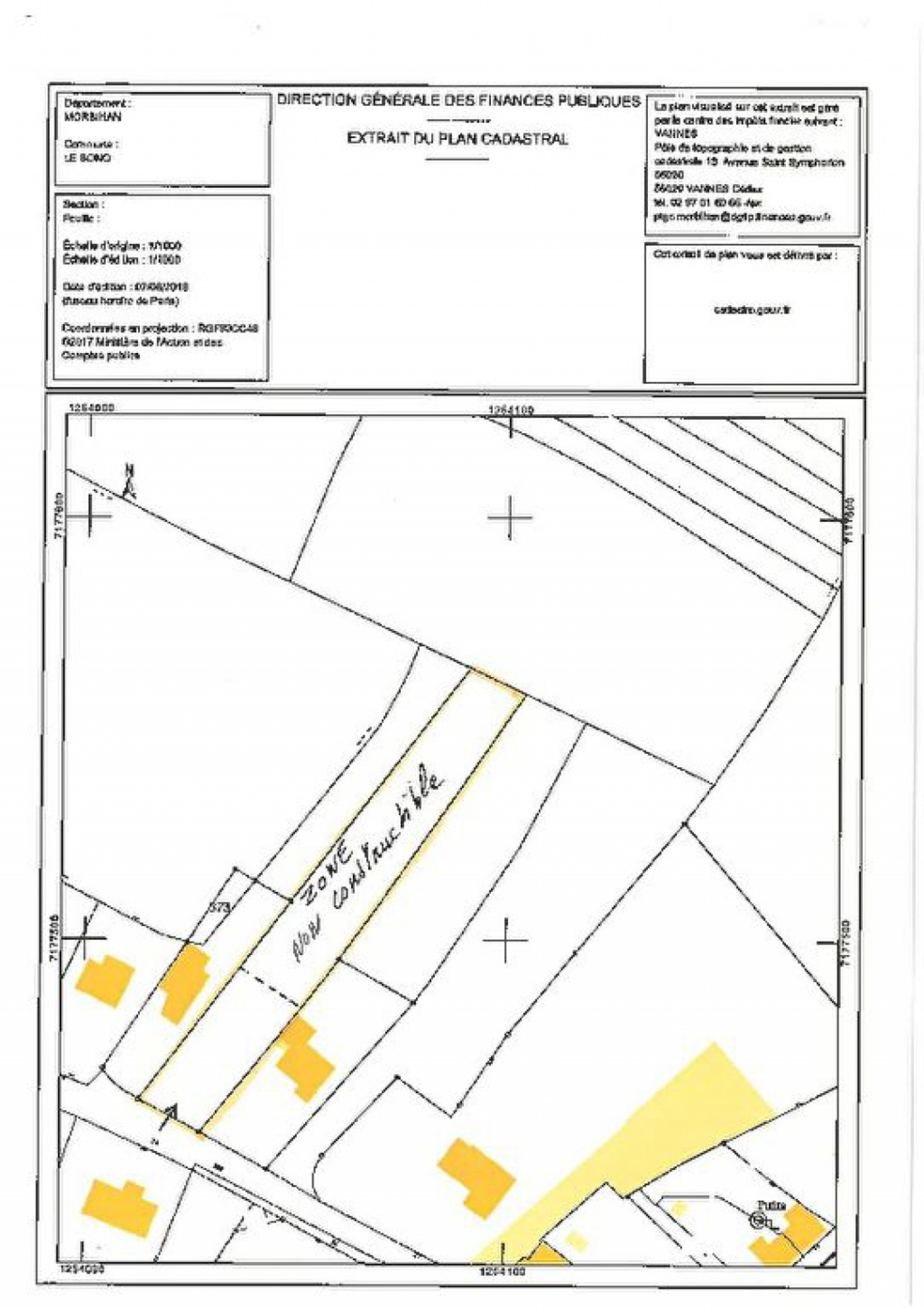 LE BONO. Exclusivité ! joli terrain à bâtir d'environ 2050m² dont environ 650m² constructible . Hors lotissement et à proximité des commerces (600m).Vendu borné et non viabilisé. Situation rare ! dont 5.00 % honoraires TTC à la charge de l'acquéreur.