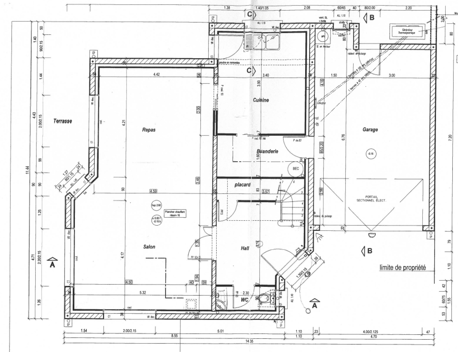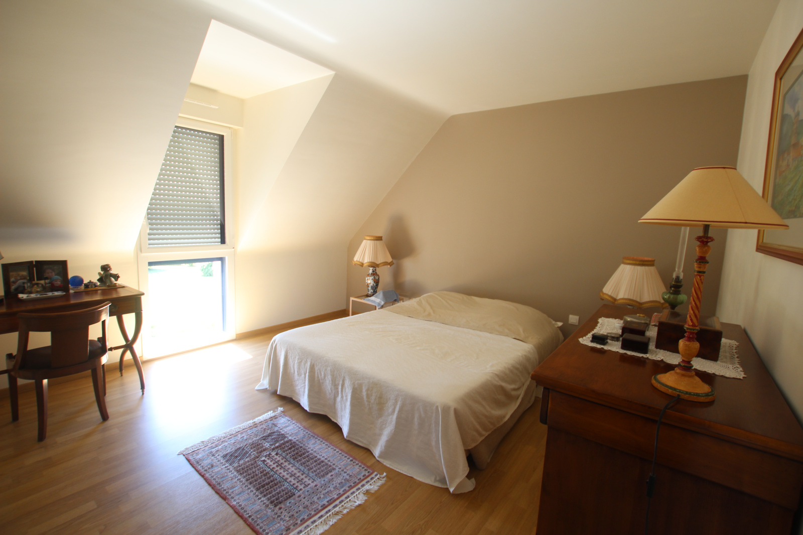 A l'étage: 3 vastes chambres, une salle de bains et une salle de douches.