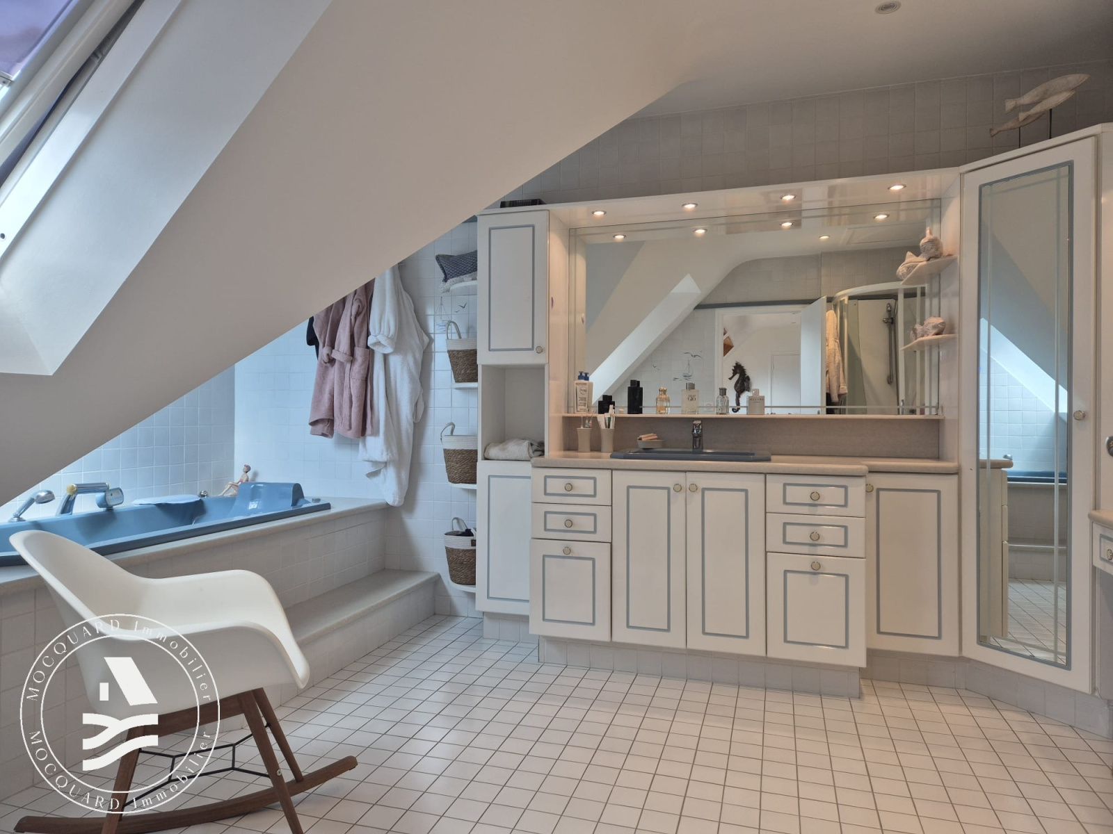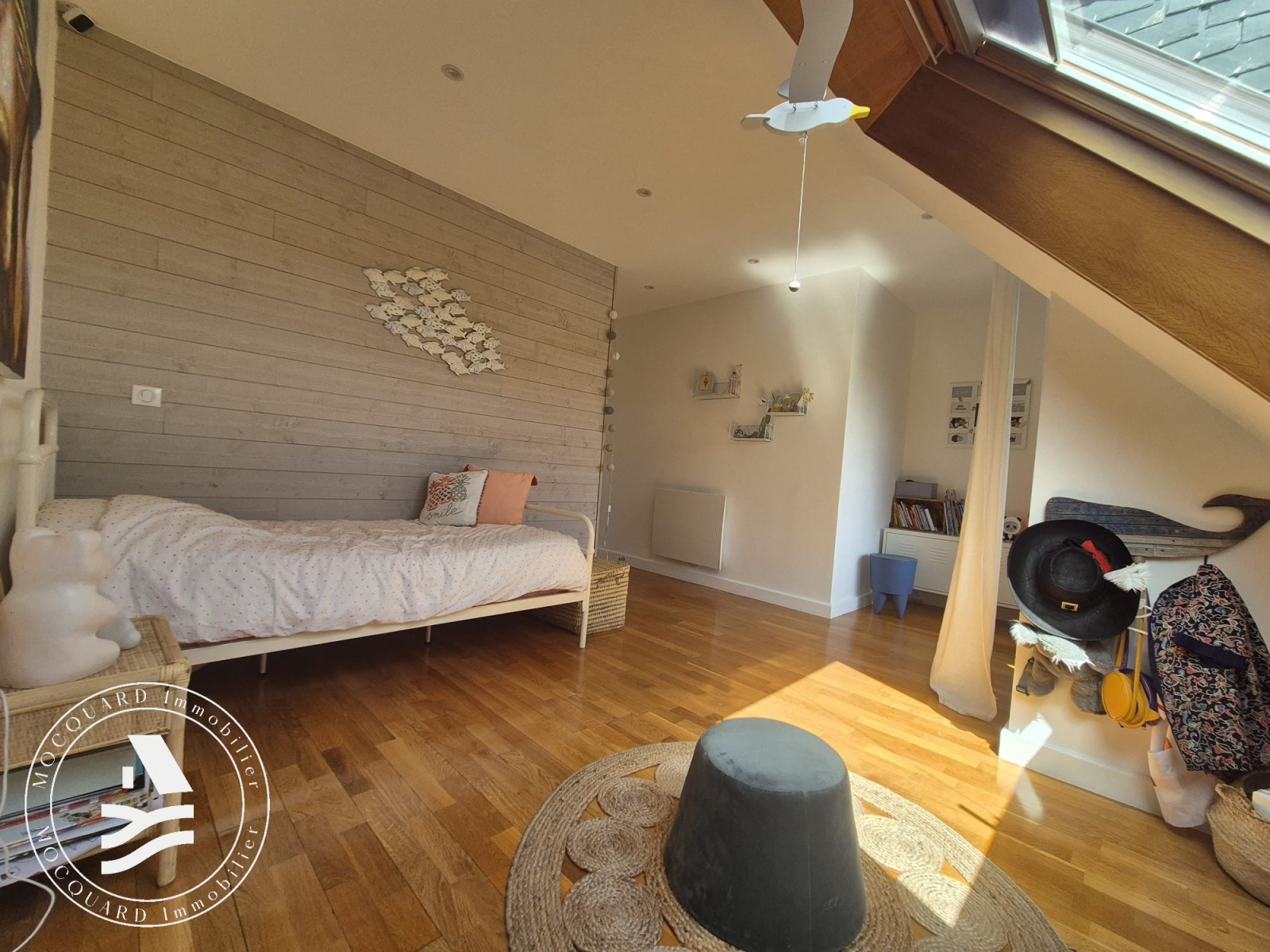 La pièce de vie, d’environ 45 m², bénéficie d’une triple exposition, offrant une luminosité remarquable tout au long de la journée.