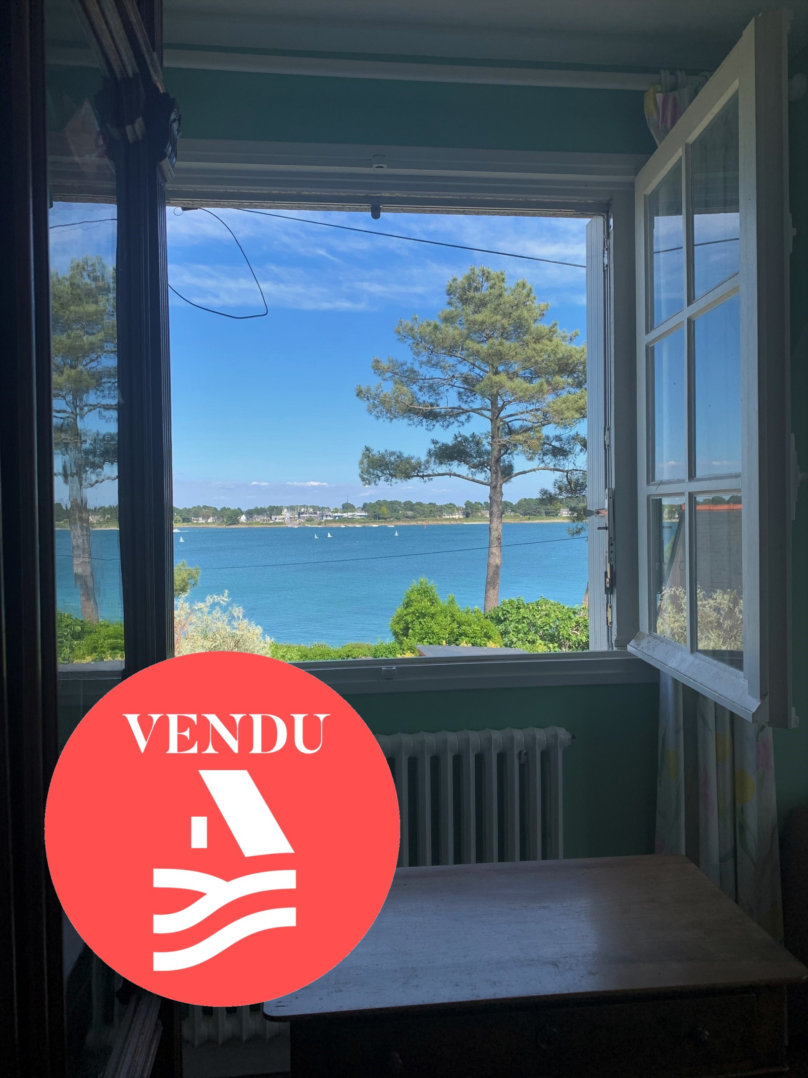 Le séjour offrant une vue imprenable sur l'entrée du port de la Trinité est unique.