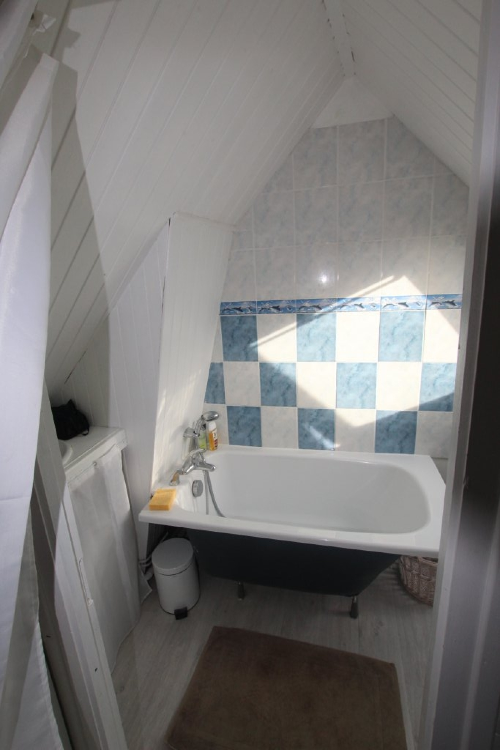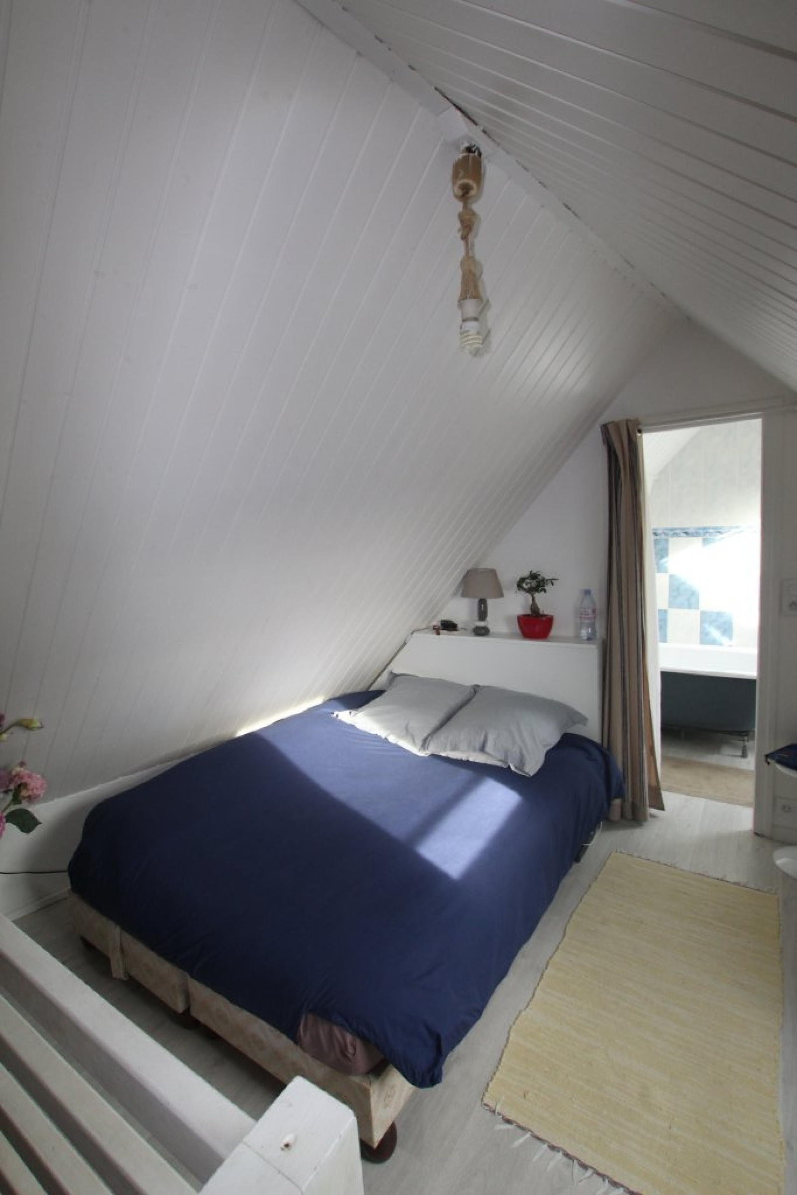 A l'.étage : une chambre avec salle de bains.