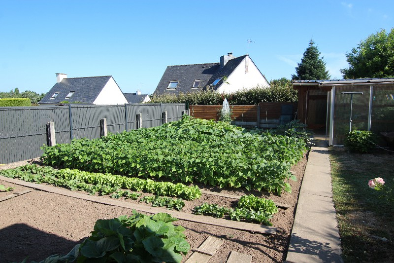 Idéalement située au coeur du bourg de CRACH, cette maison aux prestations de qualité offre au rez de chaussée: une cuisine ouverte sur séjour, un salon donnant sur terrasse, 1 chambre, salle de douches, wc. A l'étage: une chambre, une salle de douches, wc et coin nuit. Un garage, demi sous -sol et abri de jardin. Chauffage par aérothermie, récupérateur d'eaux de pluie sont des éléments importants. Le jardin est clos et paysagé. La situation et la qualité de la construction sauront vous séduire!