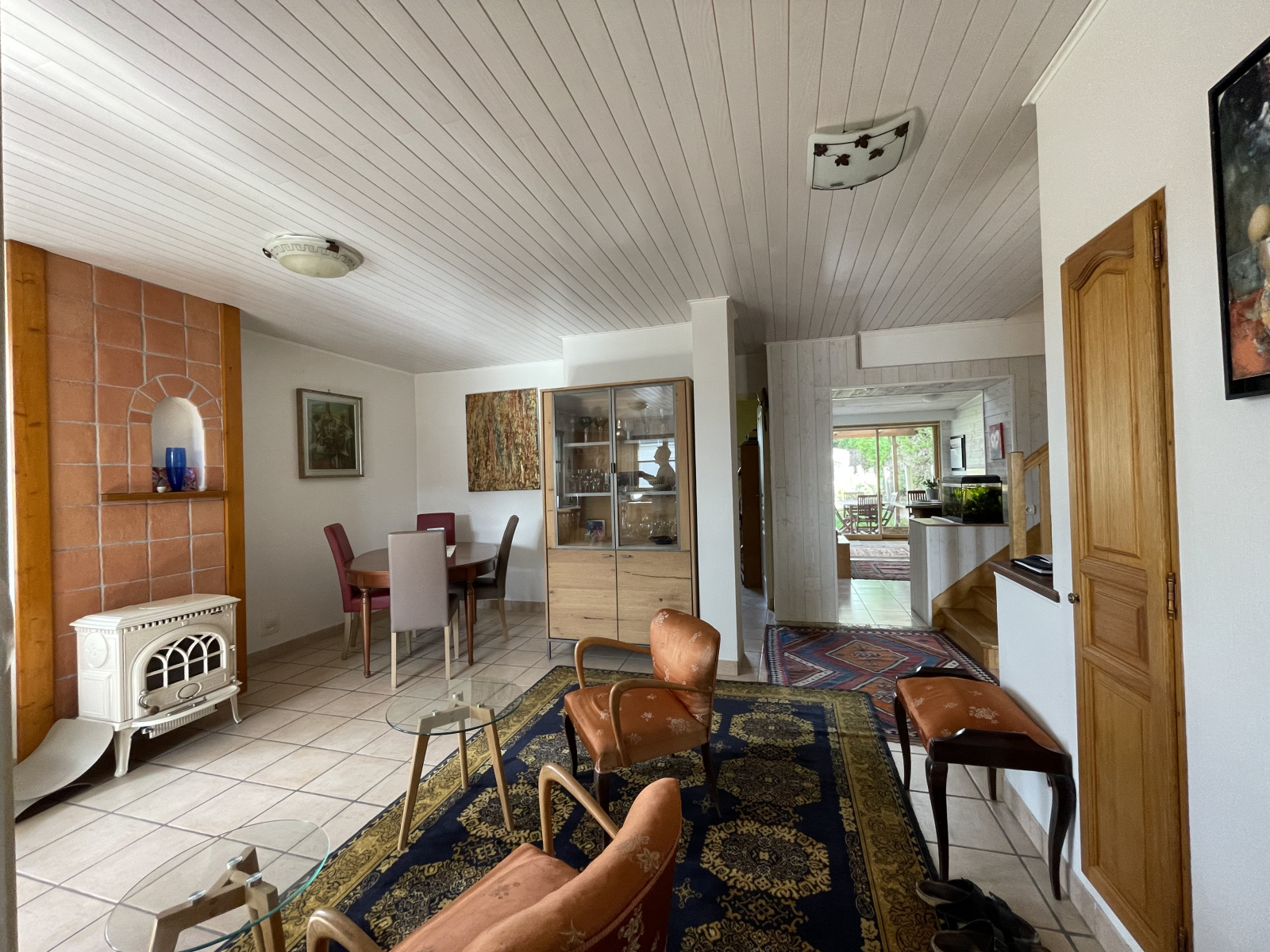 Les équipements sont pensés pour allier confort et économie d’énergie, avec un chauffage par aérothermie, un poêle à bois et un récupérateur d’eaux de pluie.