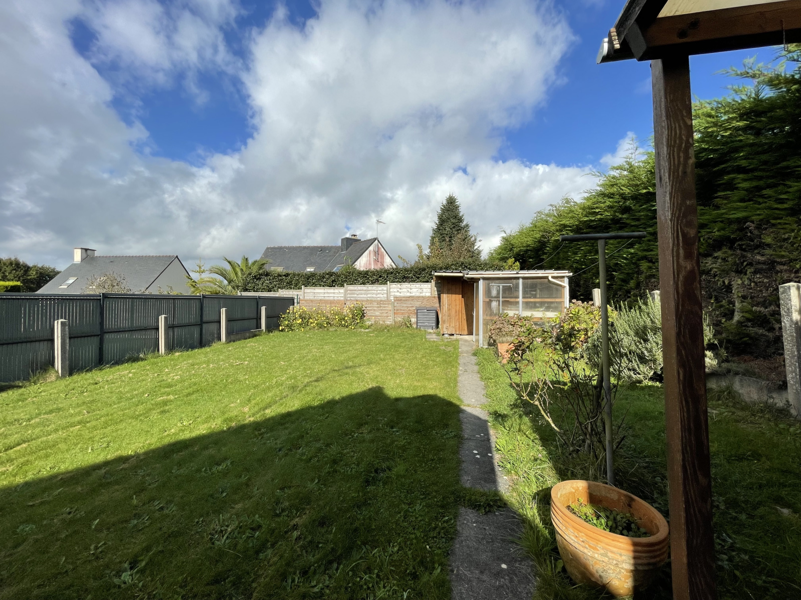 Le jardin, clos et joliment aménagé, offre un cadre paisible.