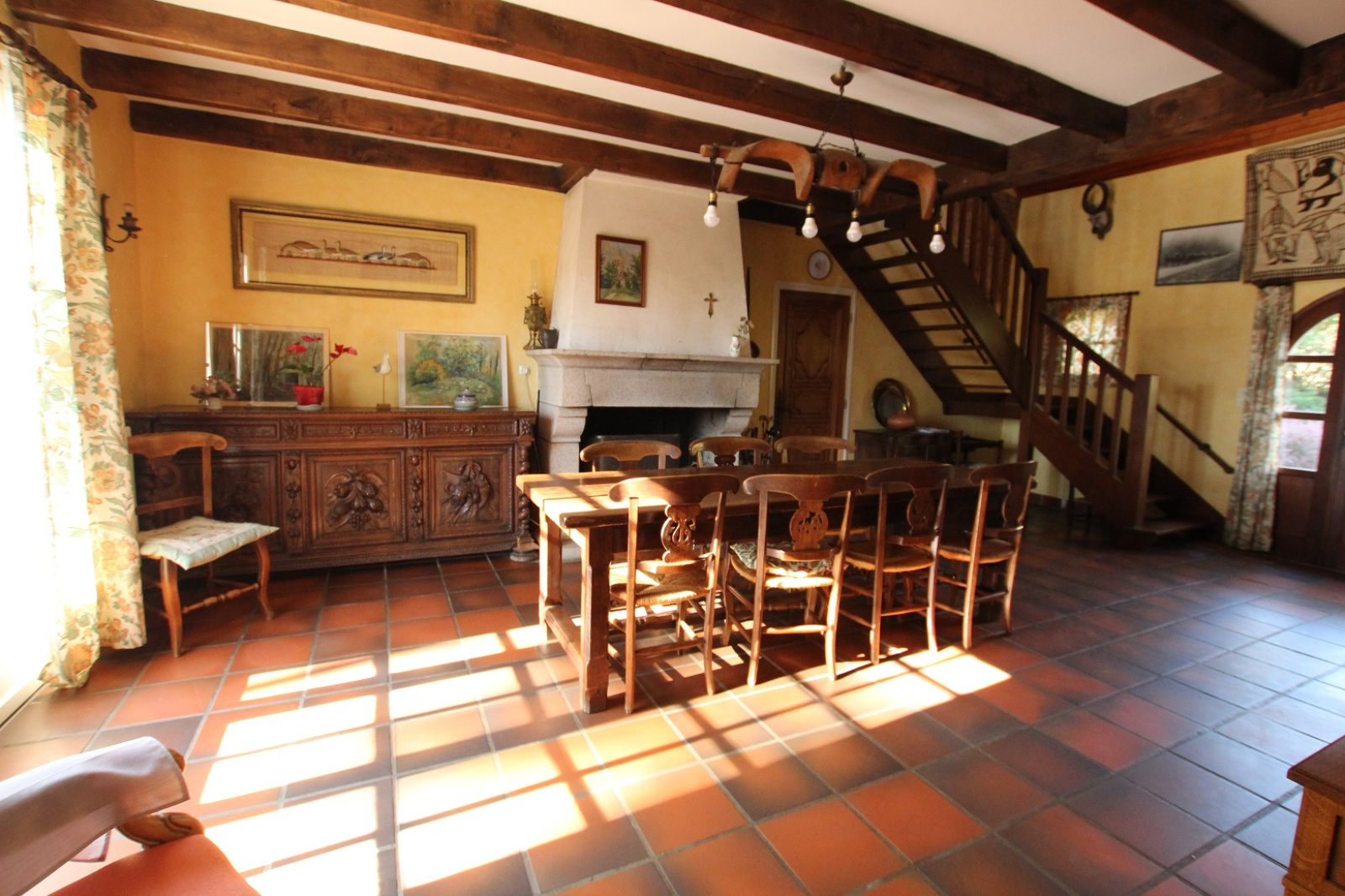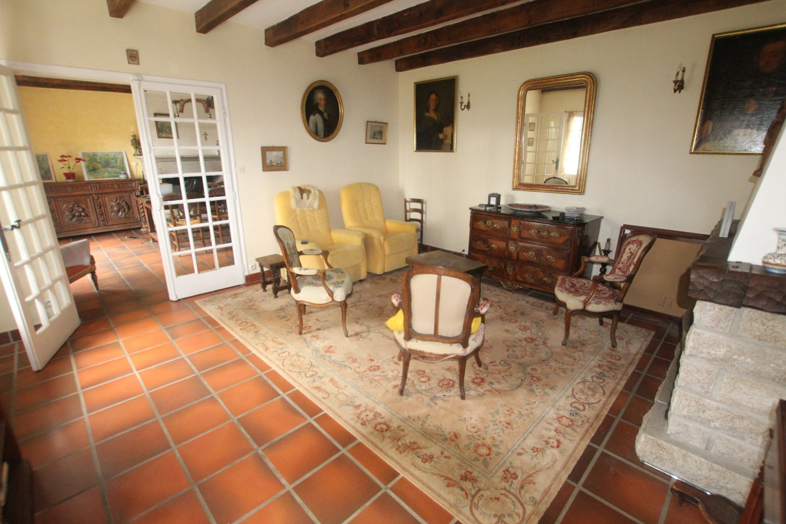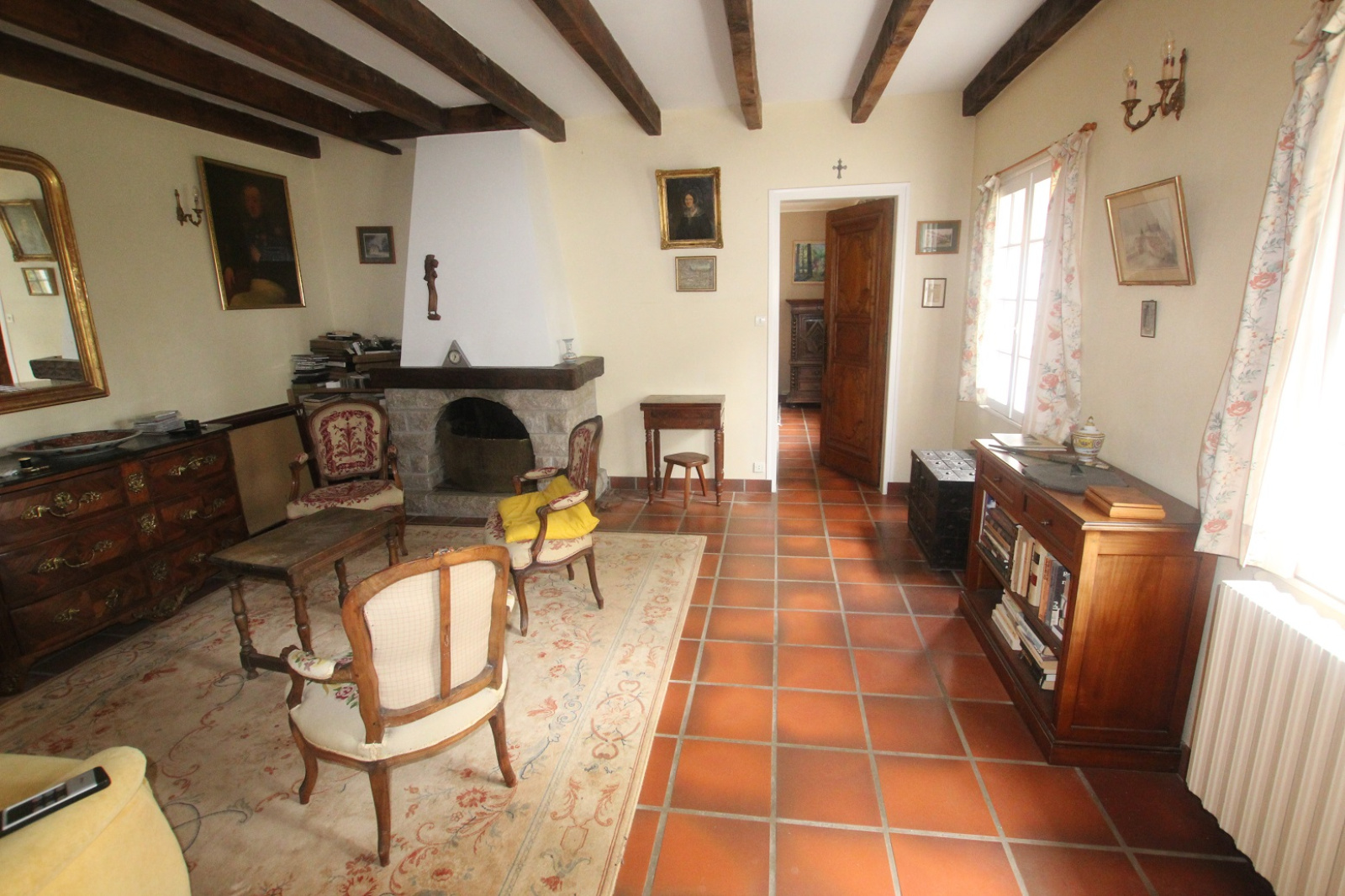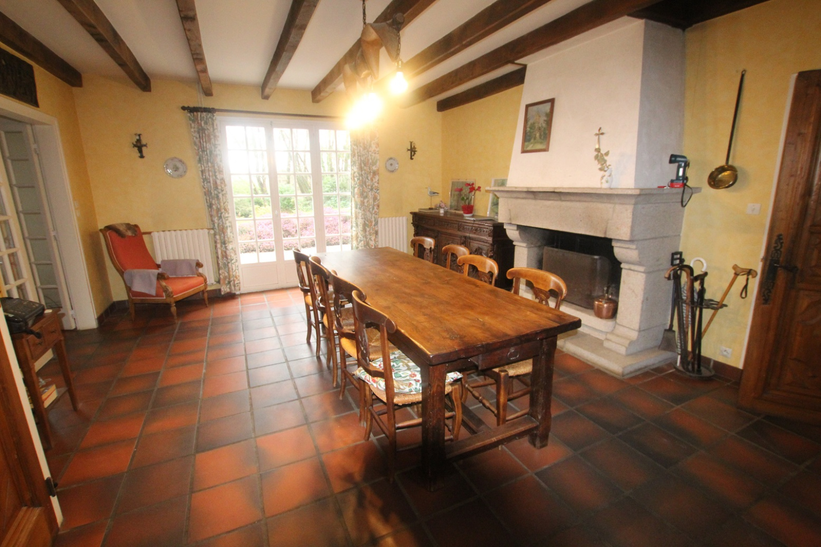 Les pièces sont spacieuses , les deux lieux de vie sont ornés de belles cheminées.