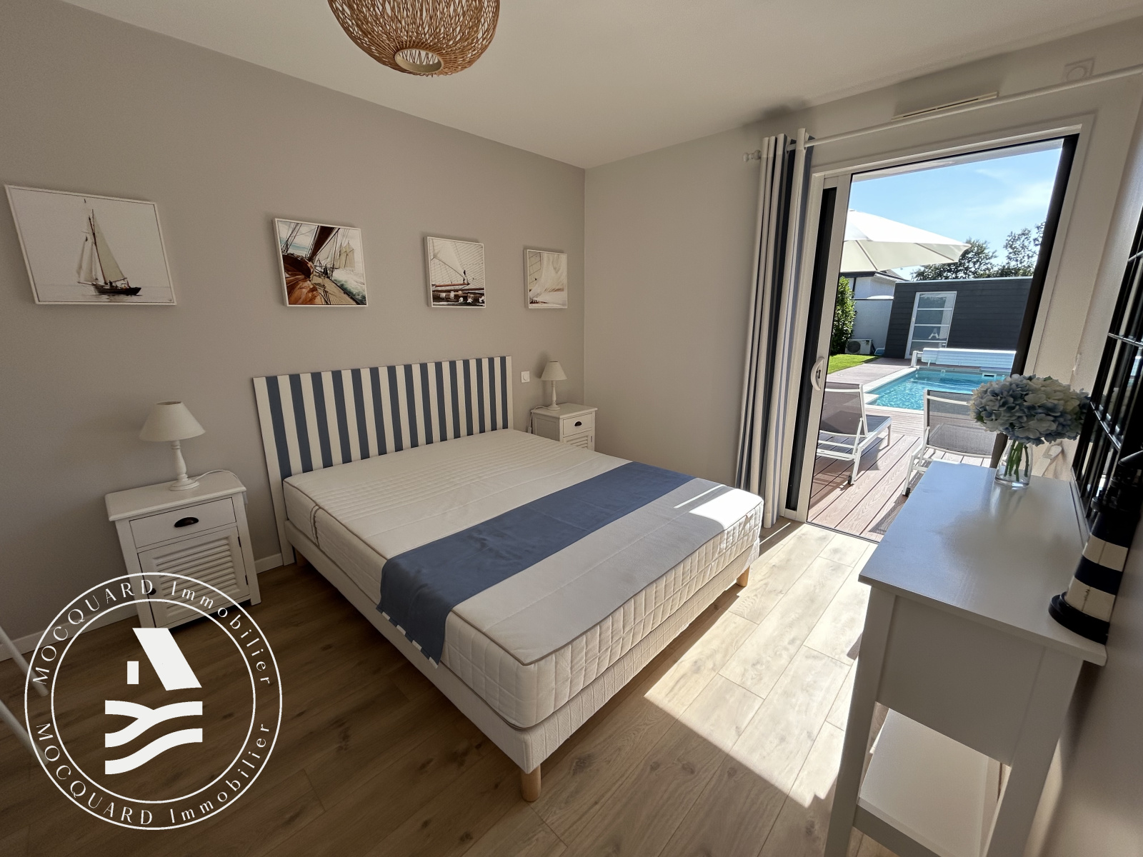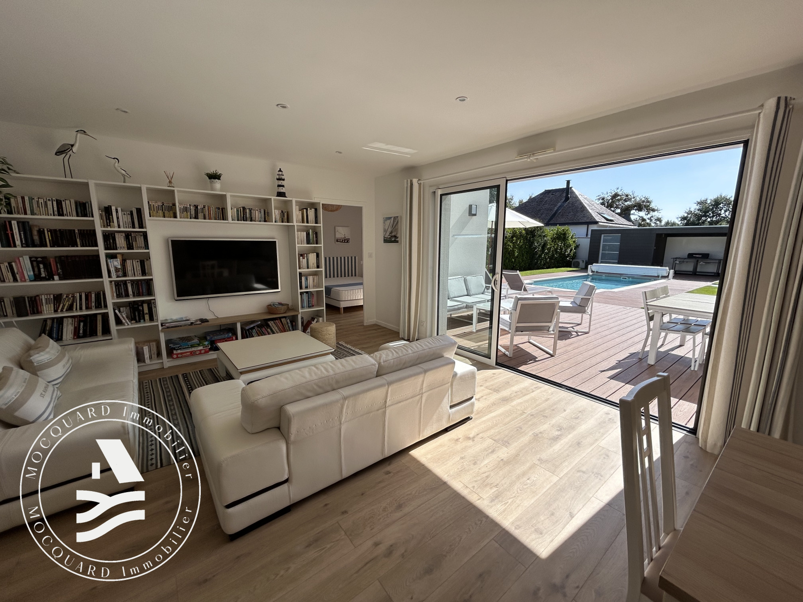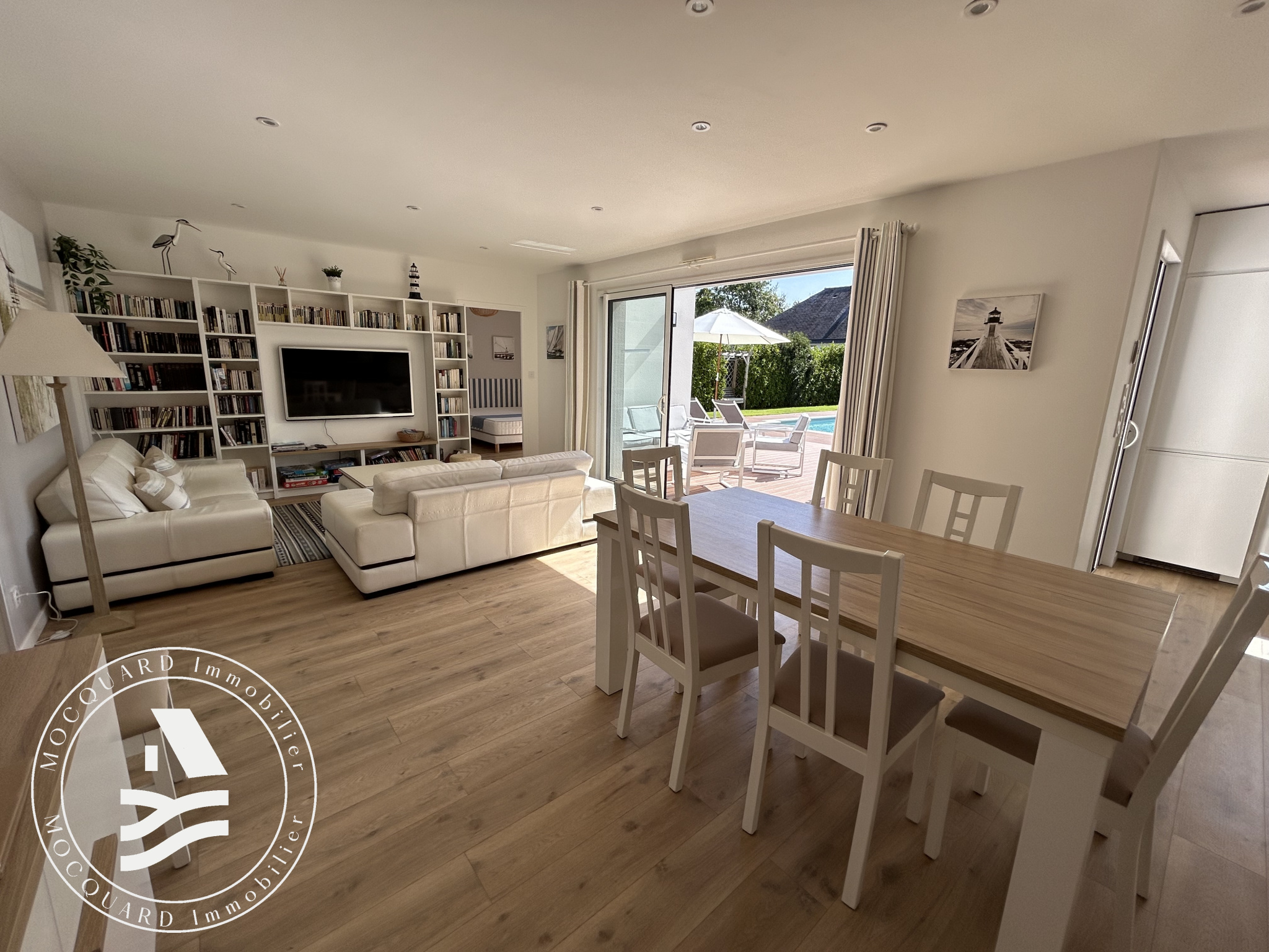 À l’extérieur, l’art de vivre s’exprime pleinement : sur un terrain clos de 680 m², une piscine s’accompagne de sa pool house, invitant à de précieux instants de convivialité et de détente. Un garage complète cet ensemble.