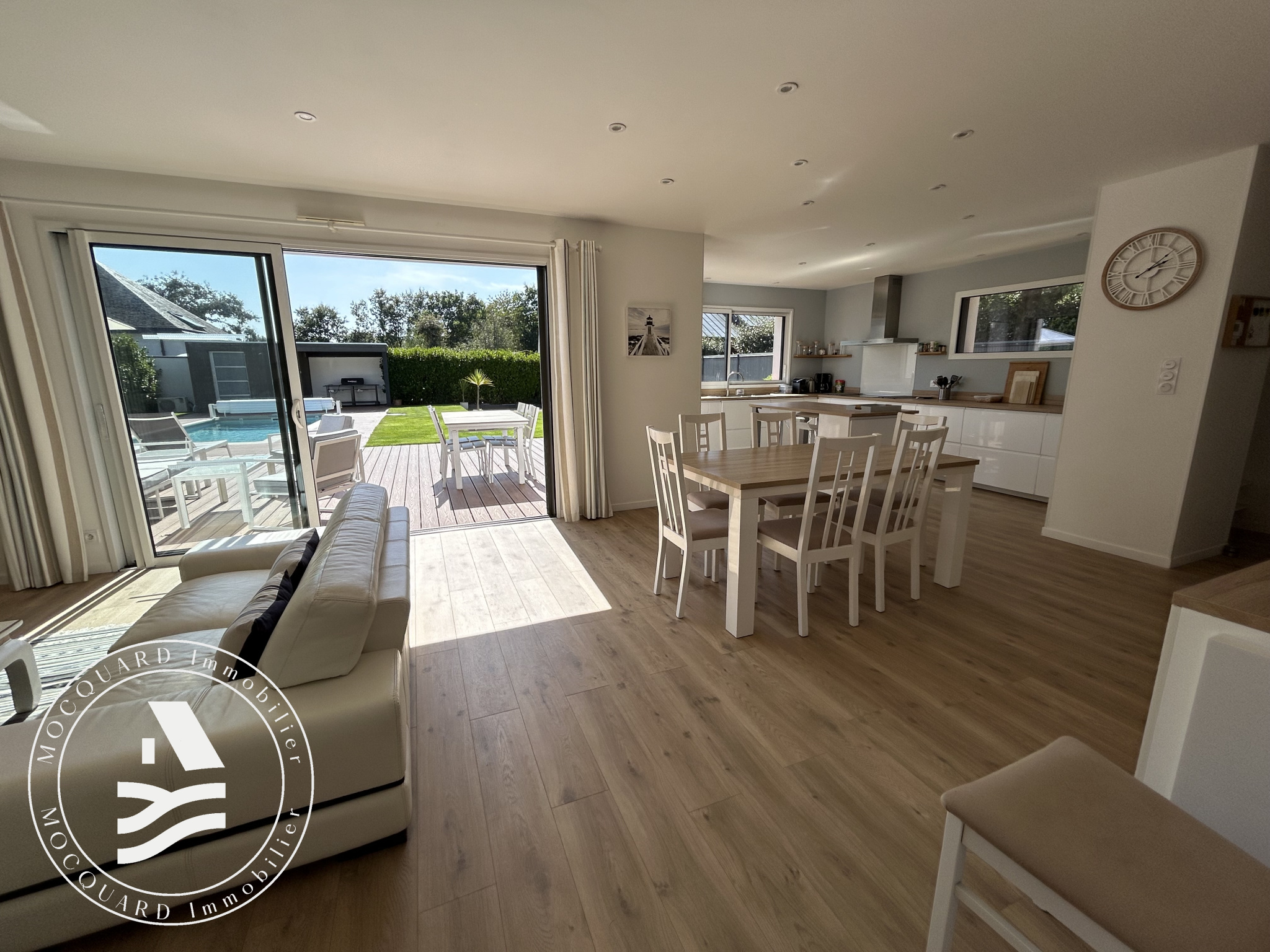 Crach (56950)MOCQUARD IMMOBILIER vous présente en exclusivité, cette élégante maison contemporaine édifiée en 2019 située à seulement 800 mètres du centre-bourg de Crac’h, au calme d’une impasse. Elle se distingue par son intimité préservée et son environnement paisible, à l’abri de tout vis-à-vis.