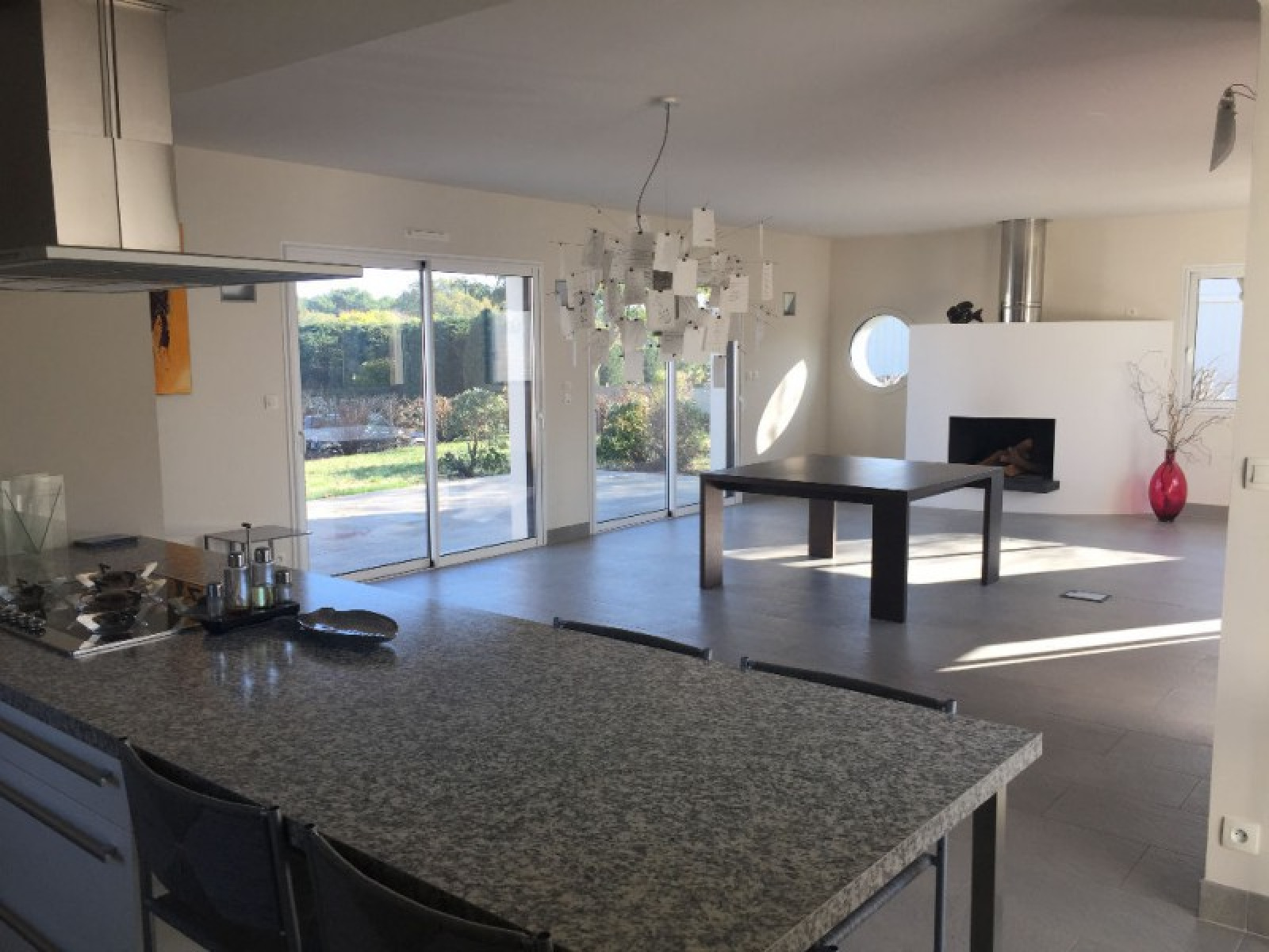 Proche Bourg, au calme d'un petit hameau champêtre, venez découvrir cette belle maison d'architecte orientée sur une magnifique vue dégagée. Vous retrouverez au rez de chaussée un séjour avec cheminée, une cuisine équipée et la suite parentale comprenant une salle de douches avec douche à l'italienne et un dressing. A l'étage, vous bénéficierez de 3 belles chambres, d'une salle de douches, d'un WC et d'une conviviale salle de jeux ou salle TV. Le garage avec grenier facilitera grandement vos rangements! L'ensemble à deux minutes en voiture des Quais de la Trinité sur mer et des plages.