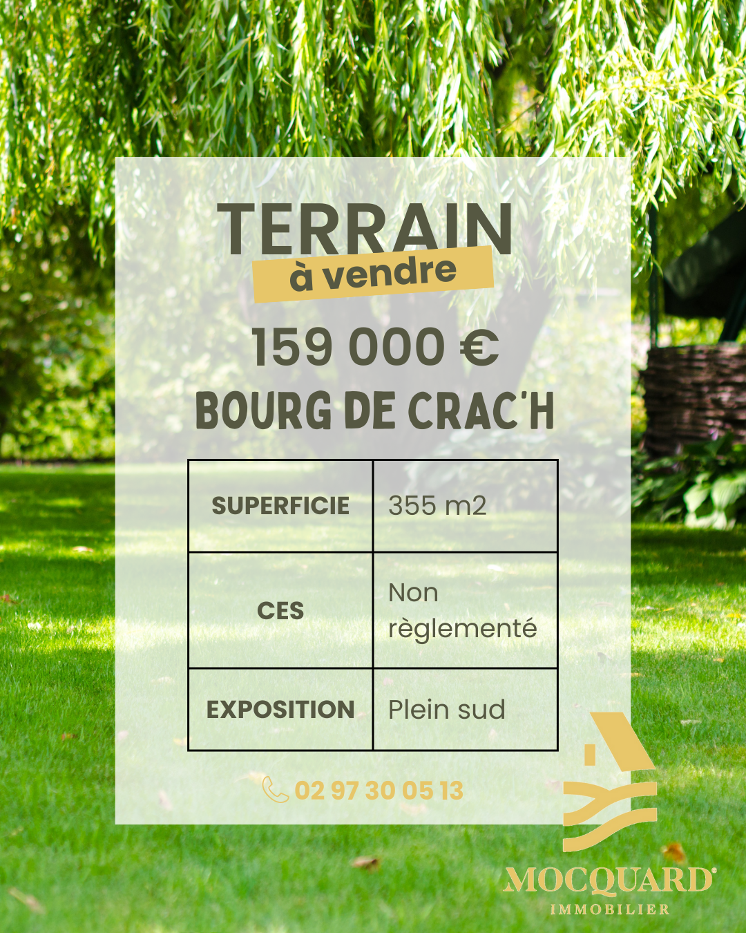 Crach (56950)Situé à proximité immédiate du bourg de Crach et à deux pas des sentiers, ce terrain à bâtir offre un cadre de vie agréable.