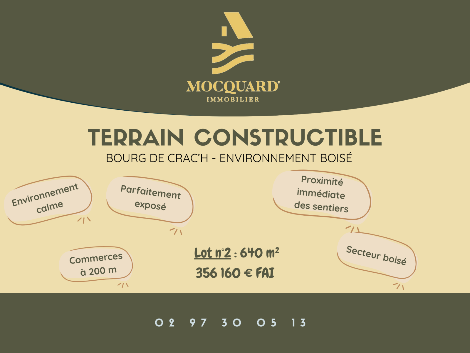 Crach (56950)Au cœur de la commune de Crach, découvrez ce terrain à bâtir de 640 m², idéalement situé dans un quartier résidentiel agréable et paisible. Sa localisation privilégiée permet de rejoindre facilement les commerces, les écoles et les services, offrant un confort de vie appréciable au quotidien.