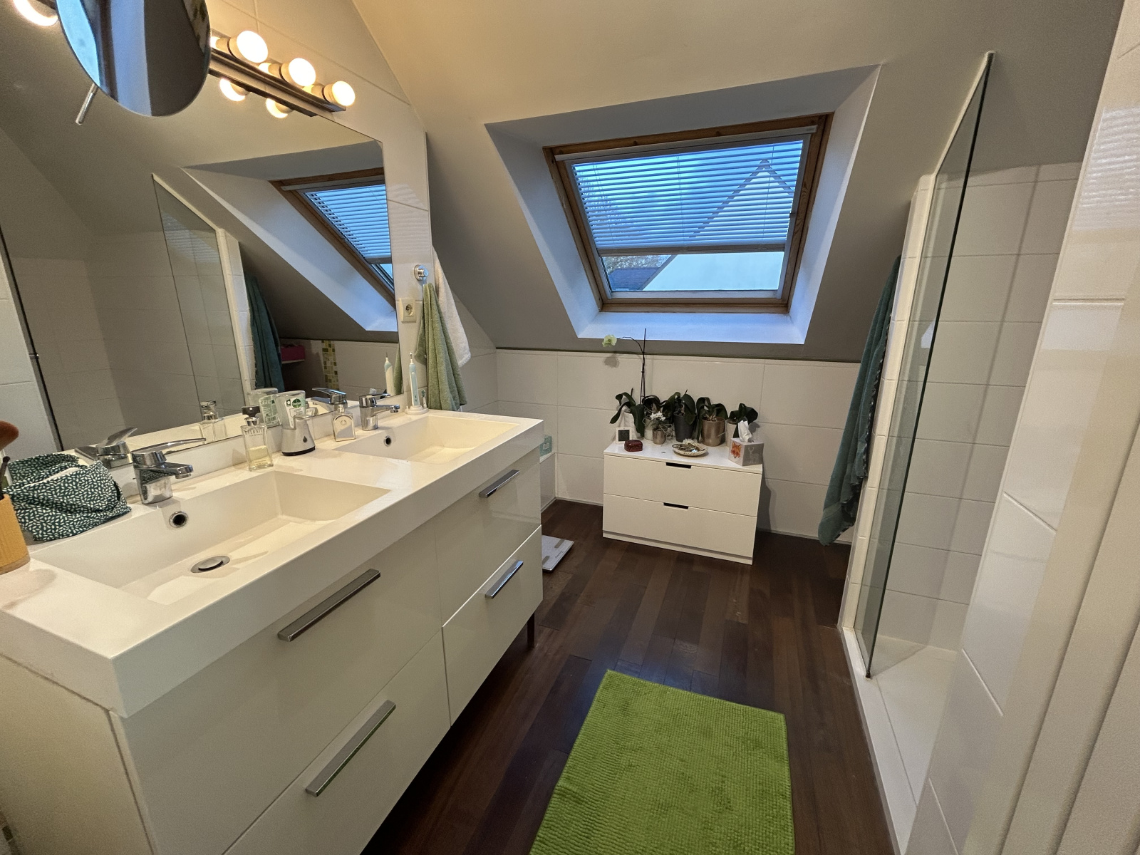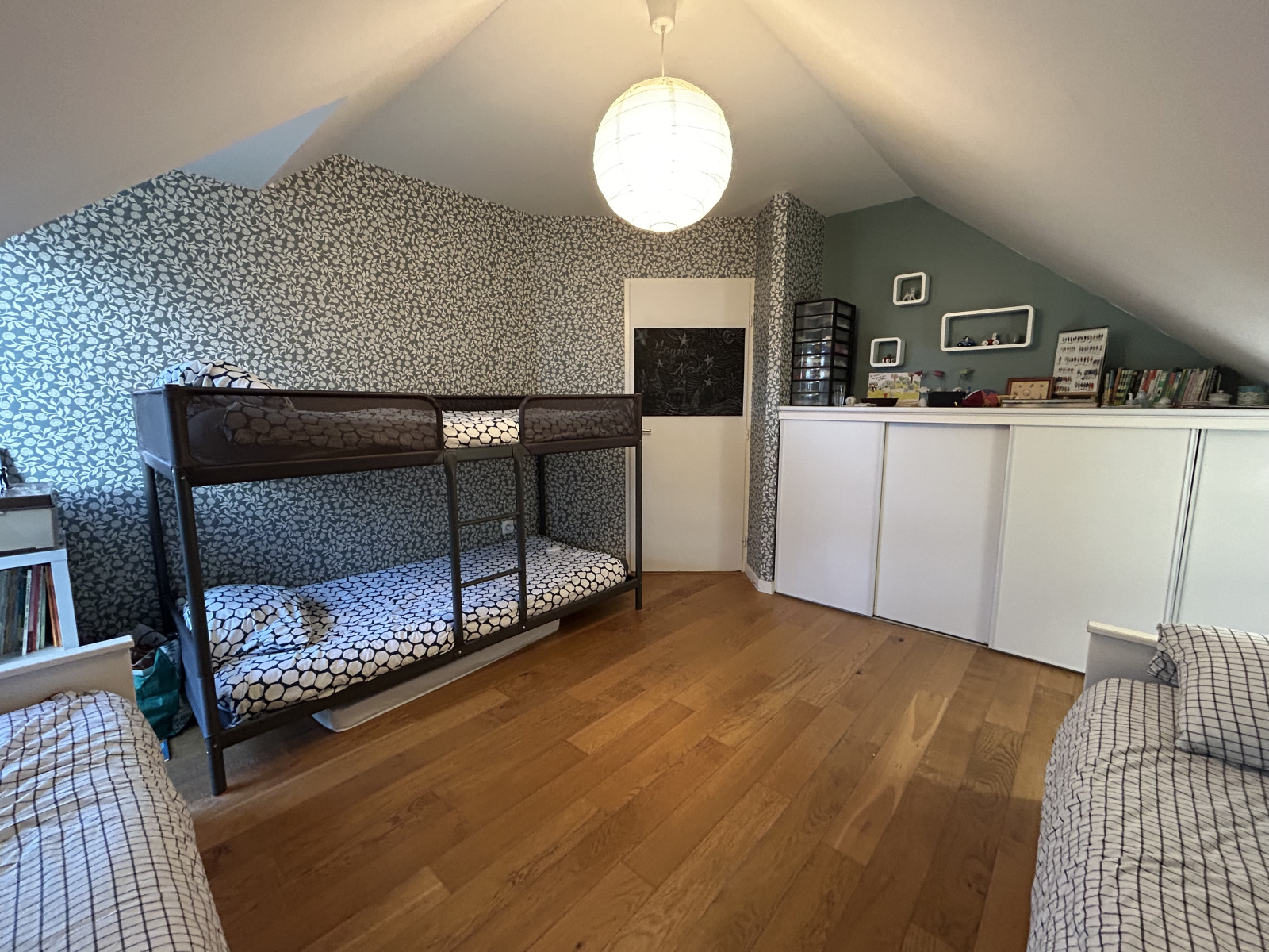 Le rez-de-chaussée propose une chambre avec salle d’eau privative, idéale pour une vie de plain-pied.