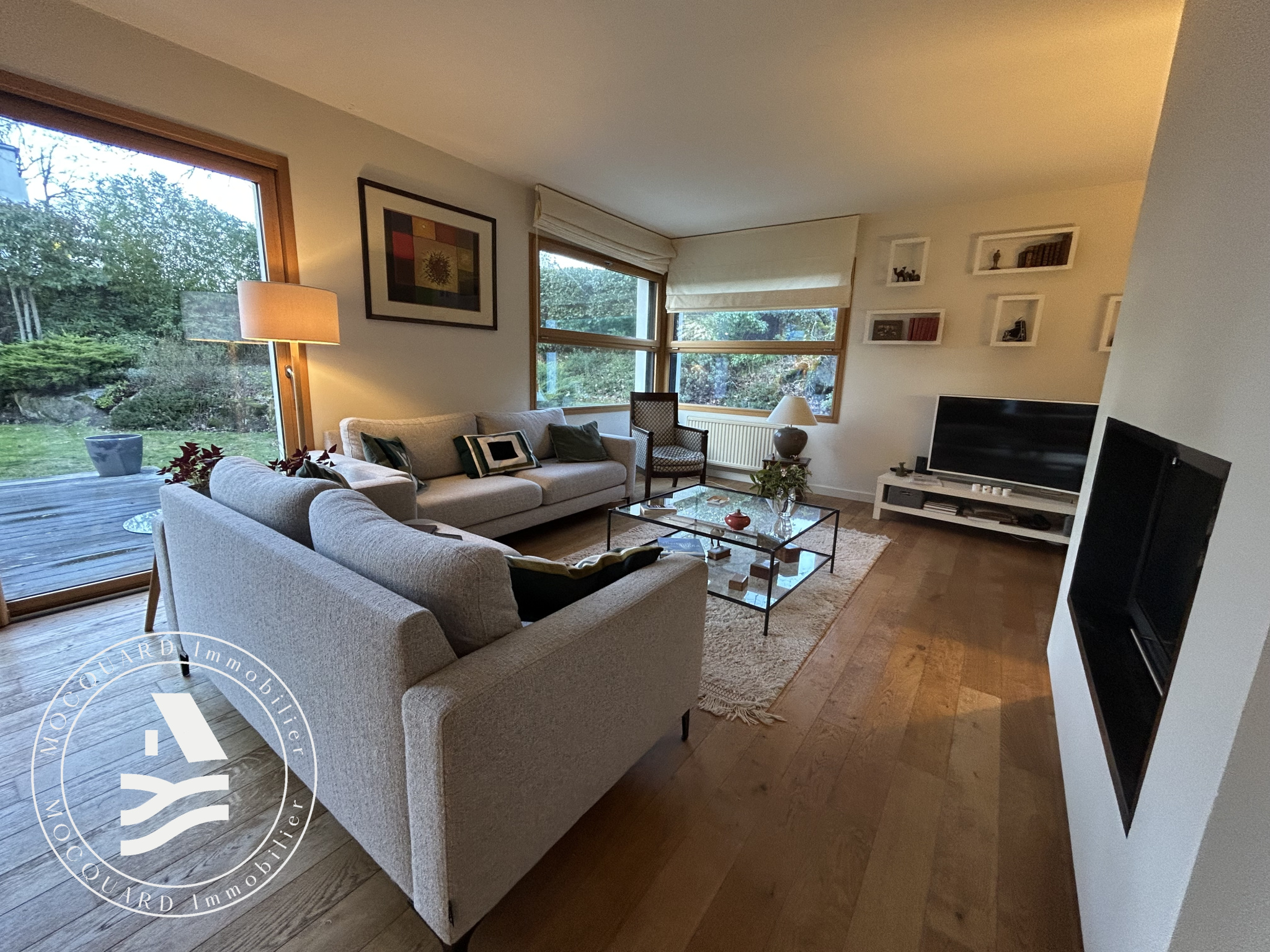 A l’extérieur, vous profiterez d’une jolie terasse en bois exotique, donnant sur un joli jardin clos et arboré, agréable et facile d’entretien, idéal pour les moments de détente en toute tranquillité.