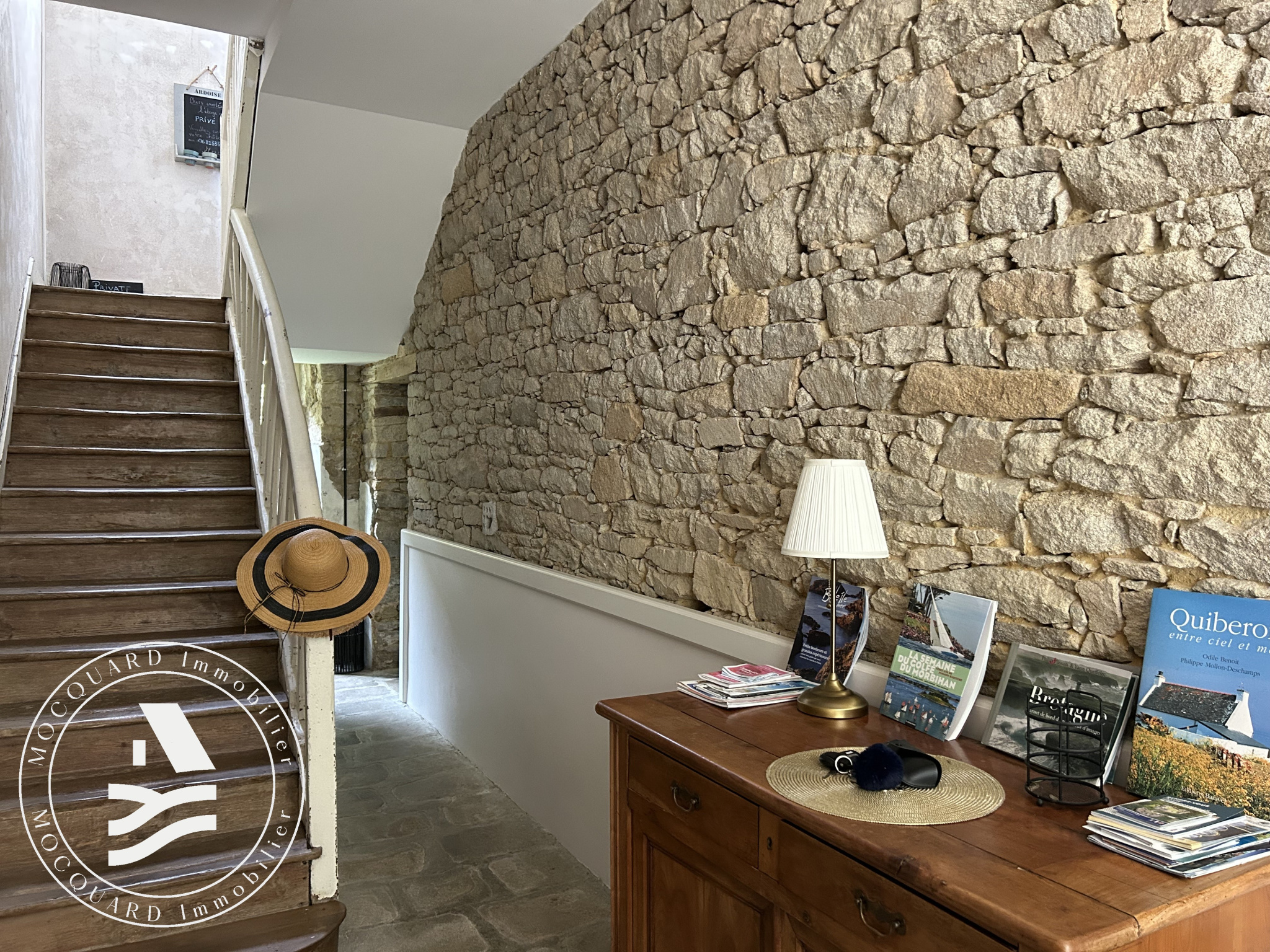 Derrière sa façade pleine d’authenticité, la propriété dévoile de beaux volumes répartis sur plusieurs niveaux.