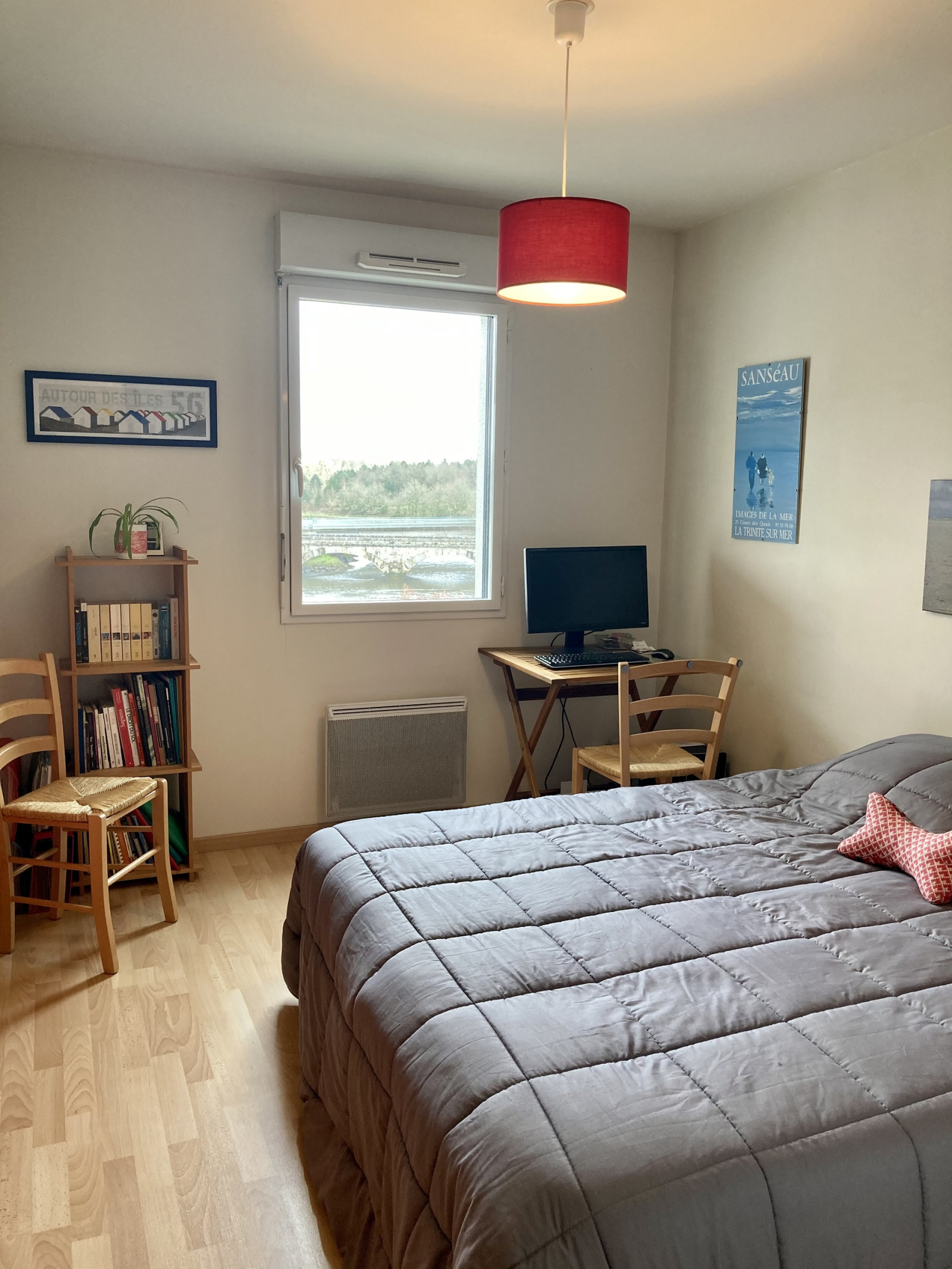 Il se compose d'une entrée avec placard, d'une cuisine ouverte sur séjour /salon de 32m² lumineux donnant sur une terrasse exposée sud, 2 chambres (placards) avec vue sur la rivière, salle de bains.