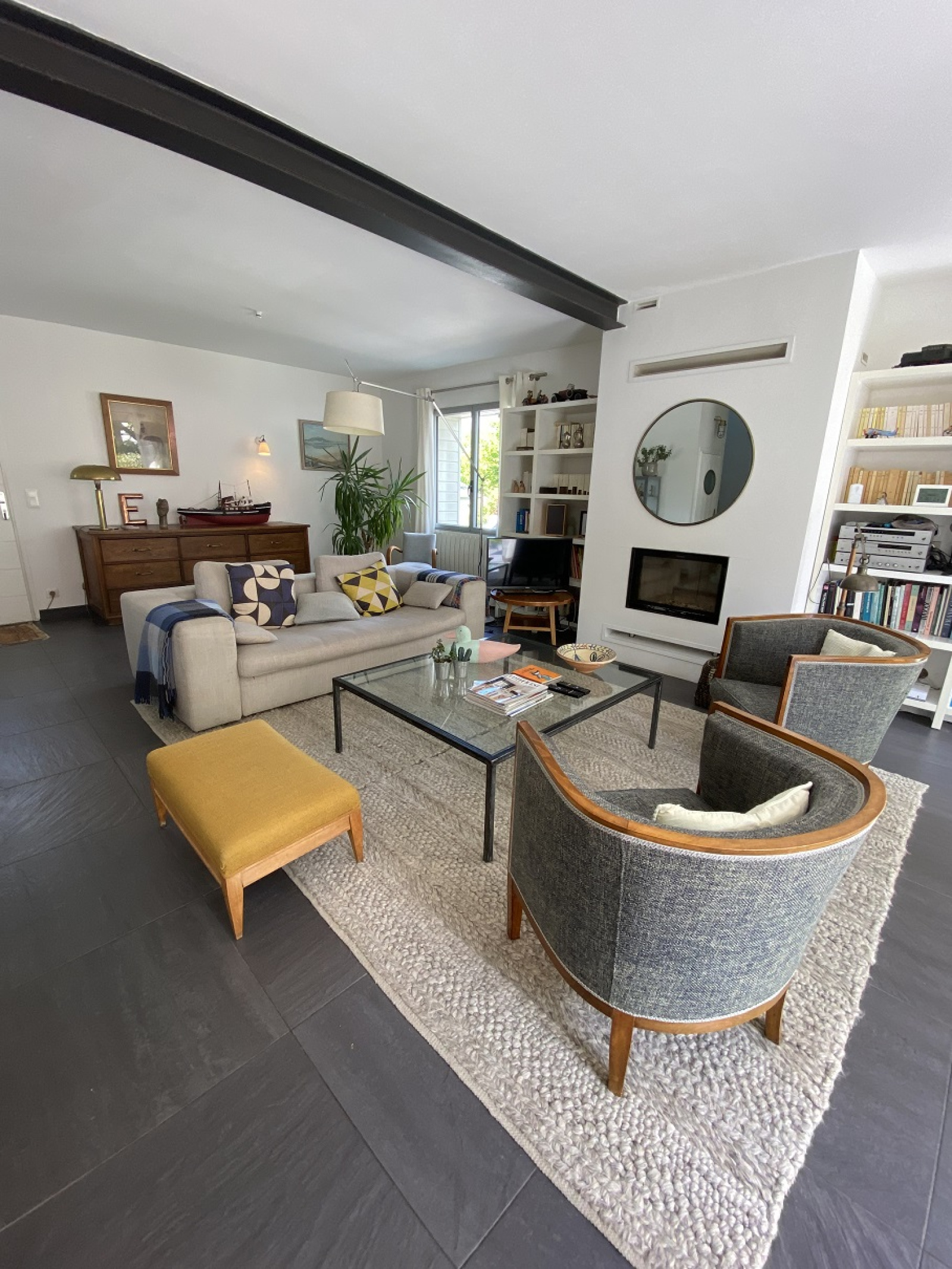 Au rez de chaussée: cuisine ouverte sur un séjour/salon avec insert, bureau baigné de lumière, chambre avec salle de douches, buanderie, appenti.