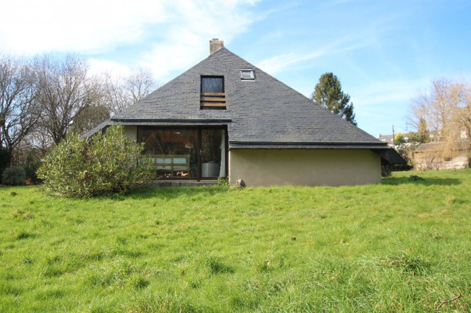 Dans un village de charme, nichée dans un magnifique parc arboré de 3900 m² entouré de murets en pierres, cette maison d'architecte spacieuse construite en parpaings et bois, inspirée des Halles de Quimper, vous impressionnera par ses volumes et sa luminosité. Elle se compose au rez de chaussée : d'une entrée, un séjour salon avec cheminée, une cuisine, un cellier, 3 chambres, salle de bains. A l'étage : 2 chambres, salle de douches et un dégagement pouvant être aménagé en chambre. Abri de jardin en bois. A 10mn de la gare d'AURAY, des plages et des communes de La Trinité Sur Mer, Carnac et Auray.