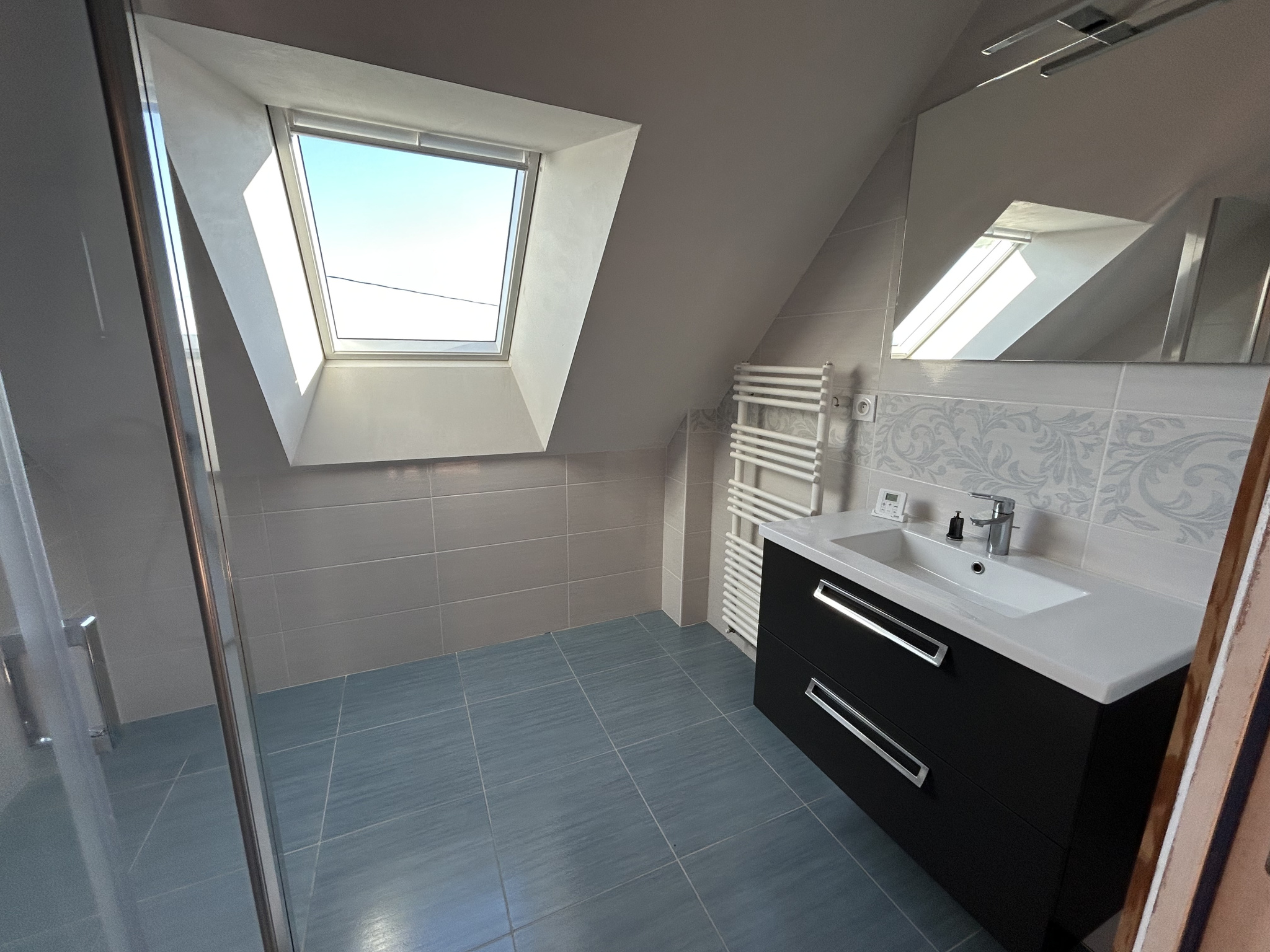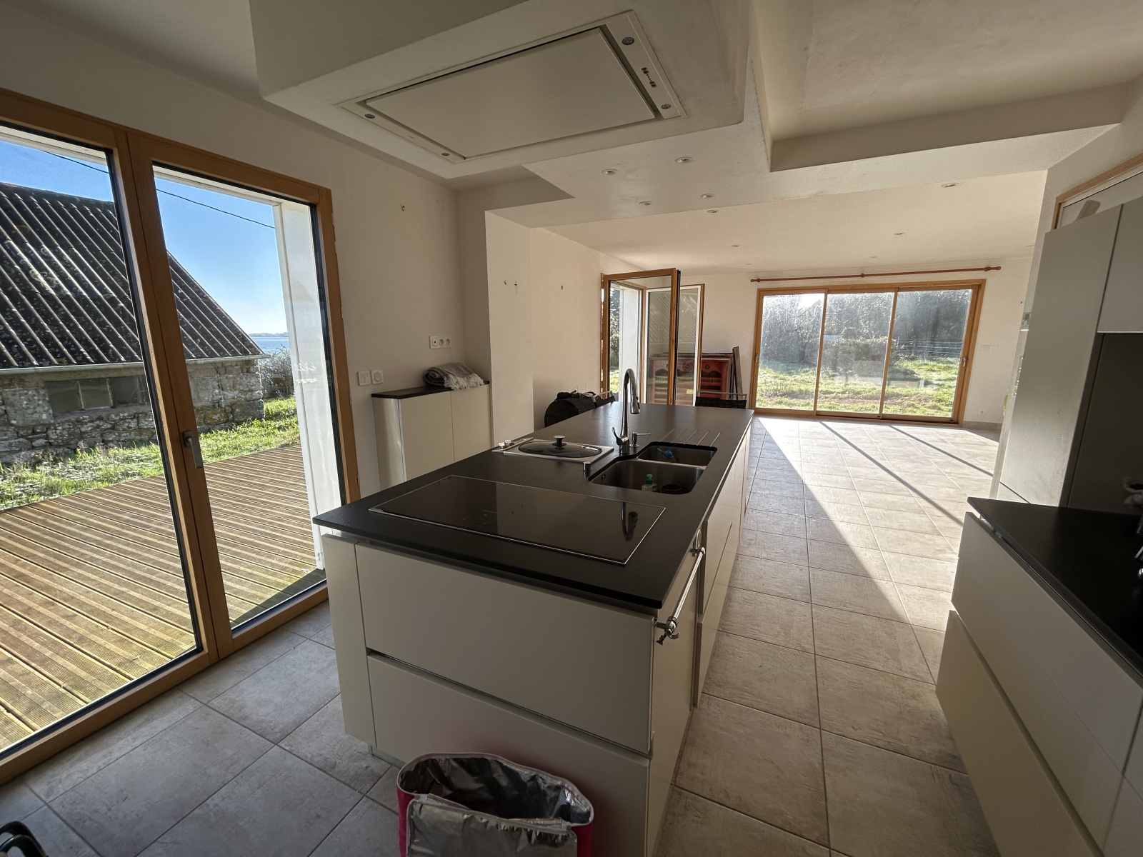 Construite en 2013, la maison a été pensée pour offrir une vie de plain pied confortable tout en mettant en valeur la luminosité et l’ouverture sur le paysage.
