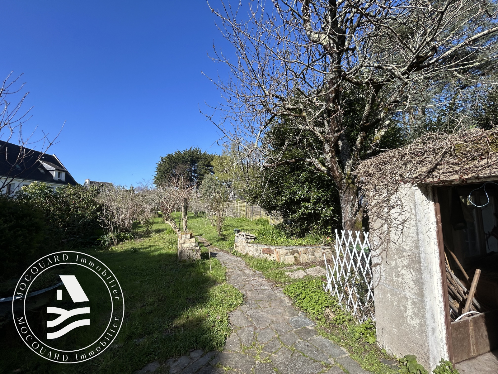 Un garage attenant à la maison complète l’ensemble, ainsi qu’une remise située au fond du jardin..