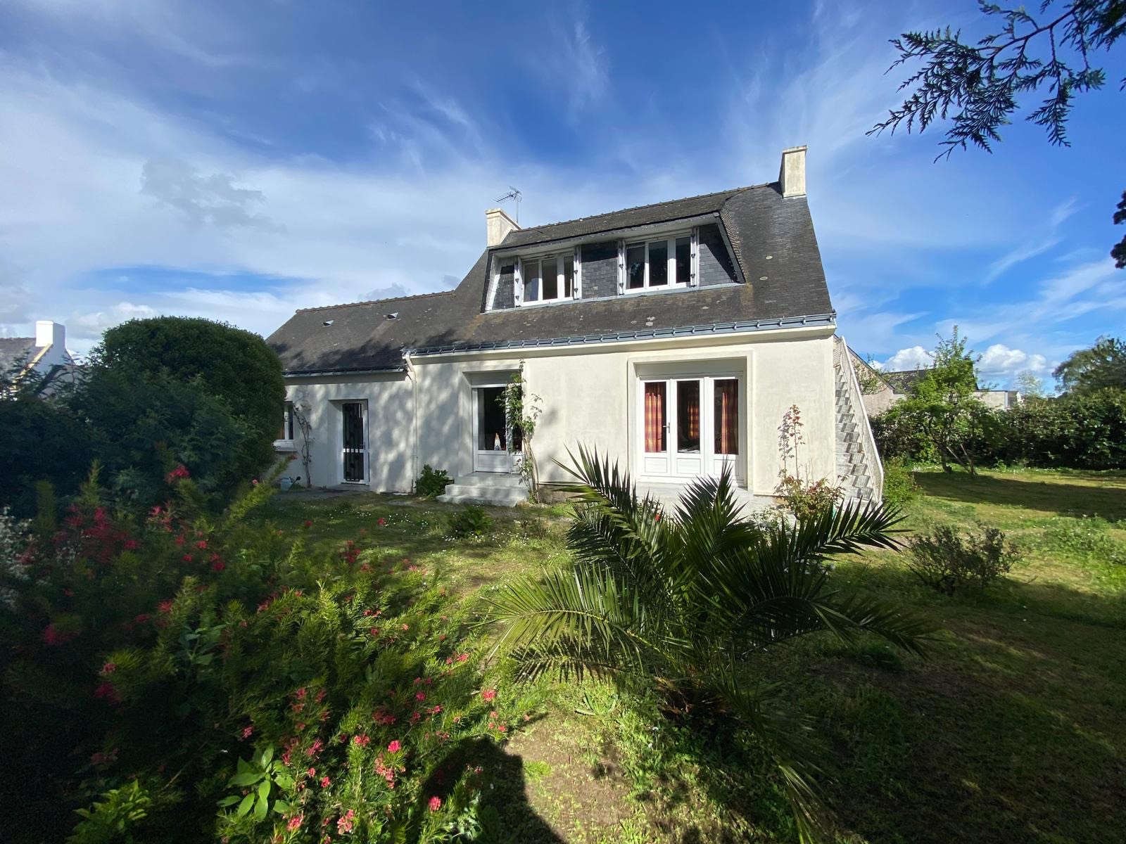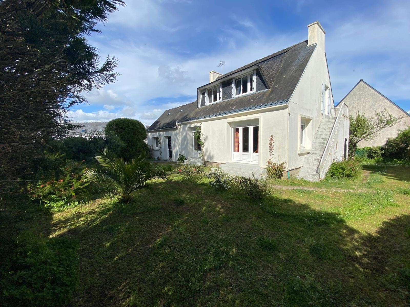 Le tout est implanté sur un beau terrain constructible d’environ 680 m², arboré et préservé des regards, au sein d’un quartier recherché de Locmariaquer.