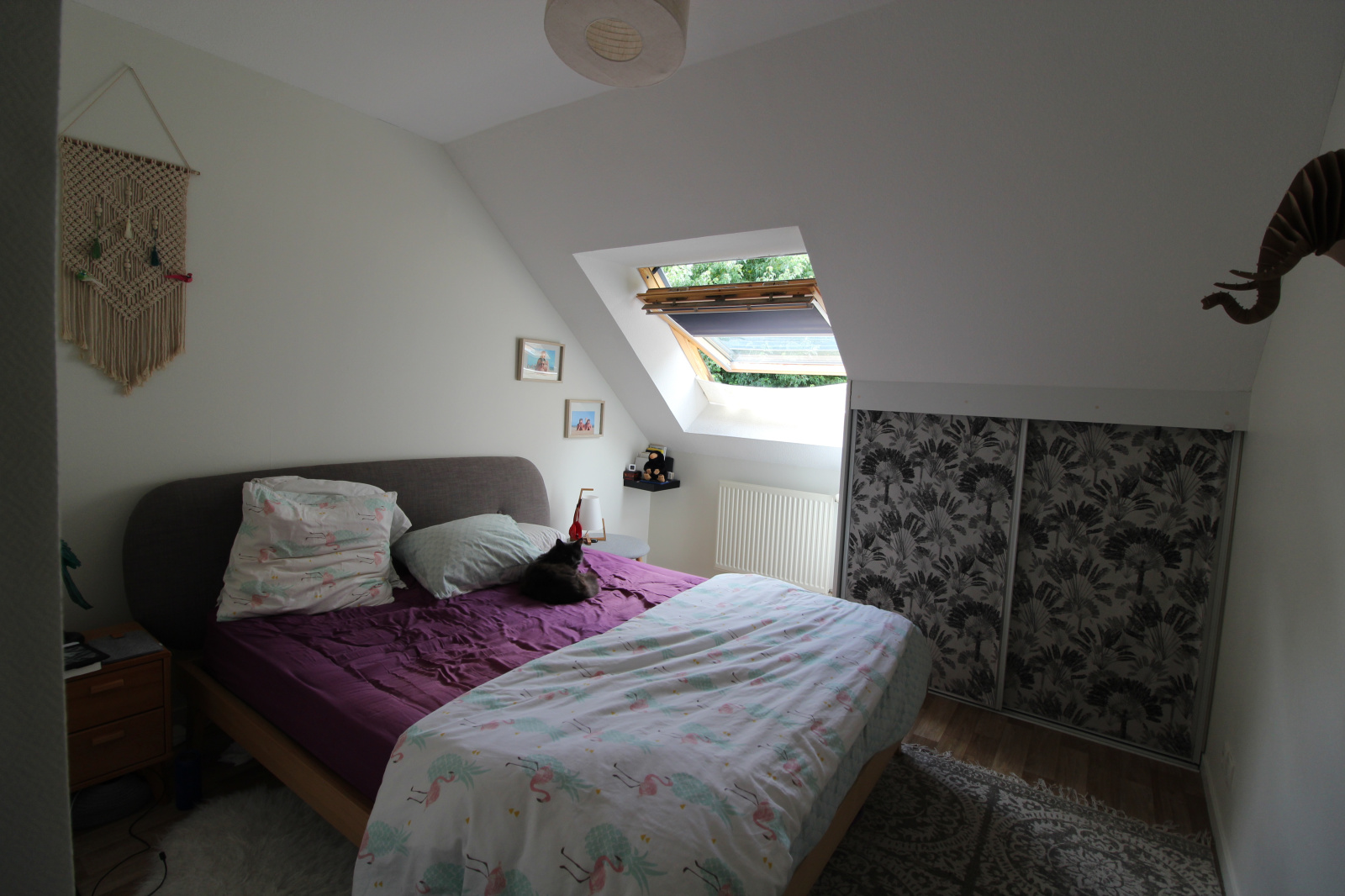A l'étage : 2 chambres, salle de bains, wc. Vous profiterez également d'une agréable terrasse ainsi que d'un jardin privatif d'environ 100m² donnant sur un grand espace vert. Un opportunité à découvrir au plus vite !